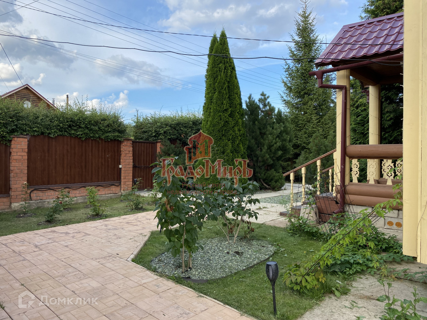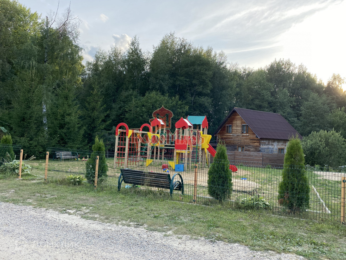15 соток, правильной формы, огорожен по двум сторонам новым металлическим забором под дерево, вдоль которого растет живая изгородь высотой более 1,5 метров. Есть калитка и ворота с электроприводом, установлены камеры видеонаблюдения с датчиком движения, благоустроенная парковка, дорожки и площадка с зоной барбекю (мангал, мебель и скамейки прилагаются). По другим сторонам установлен забор из деревянного штакетника. Много свободного пространства, идеальный газон и много зелени!