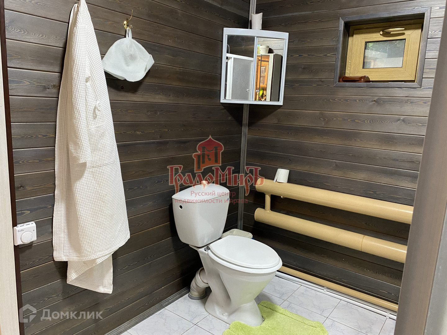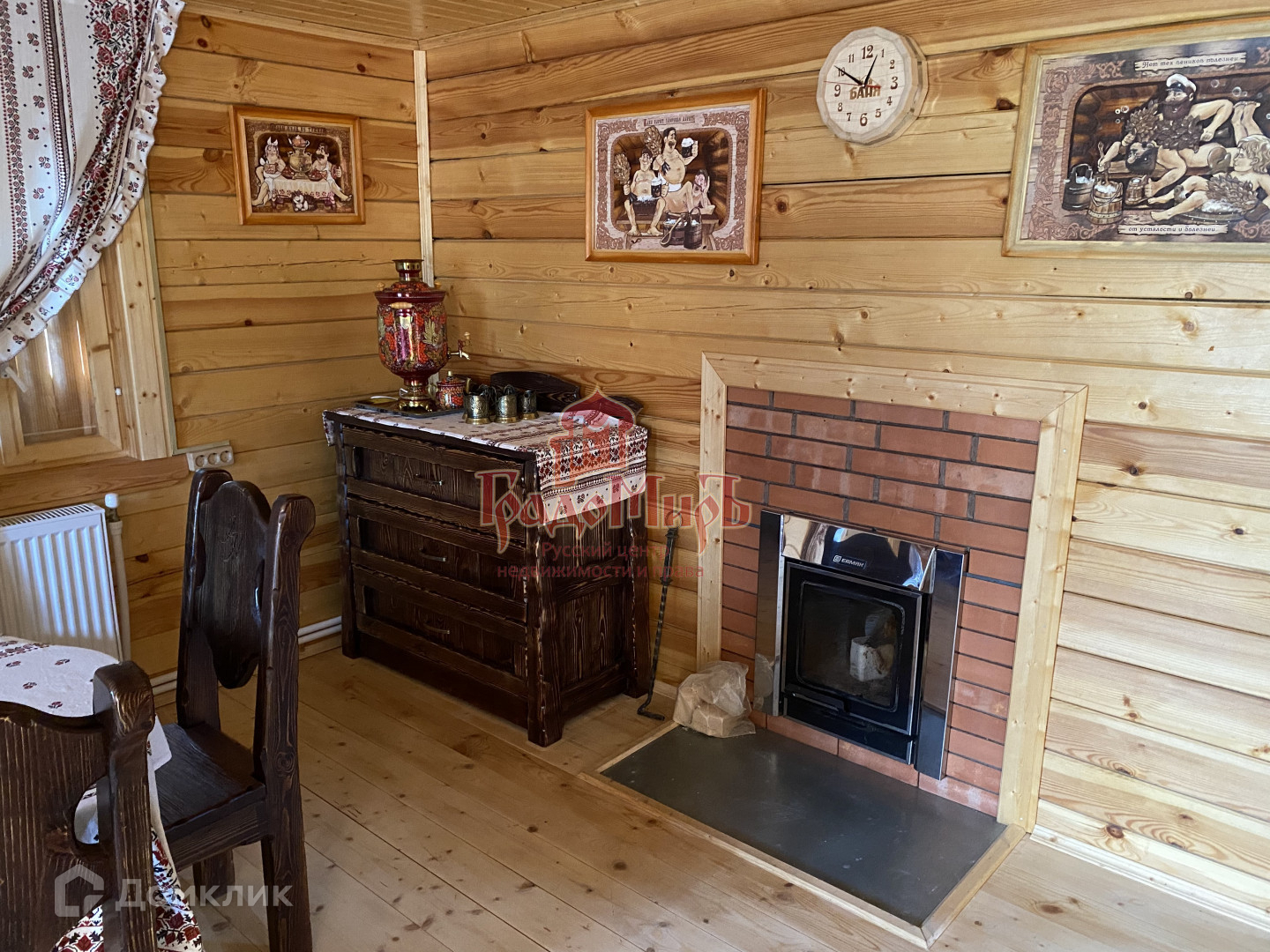 6х9 м., также как и дом, обшита блокхаусом. Это настоящее сокровище для любителей хорошего пара! В бане есть прихожая, большая комната отдыха (36 кв.м.) с камином-печью (ERMAK 30), рассчитанная на большую компанию, просторная парная, обшитая липой (+250 кг камней четырех видов), помывочная с душем и двумя бочками по 50 литров системы «ливень» (автоматический налив воды), туалет. В котельной бани установлен котел Эван, стабилизатор напряжения, бойлер для нагрева воды «Stiebel eltron» на 150 литров. В комнате отдыха установлена деревянная мебель из натурального дуба, сделанная на заказ. Самовар и лёдогенератор в подарок.