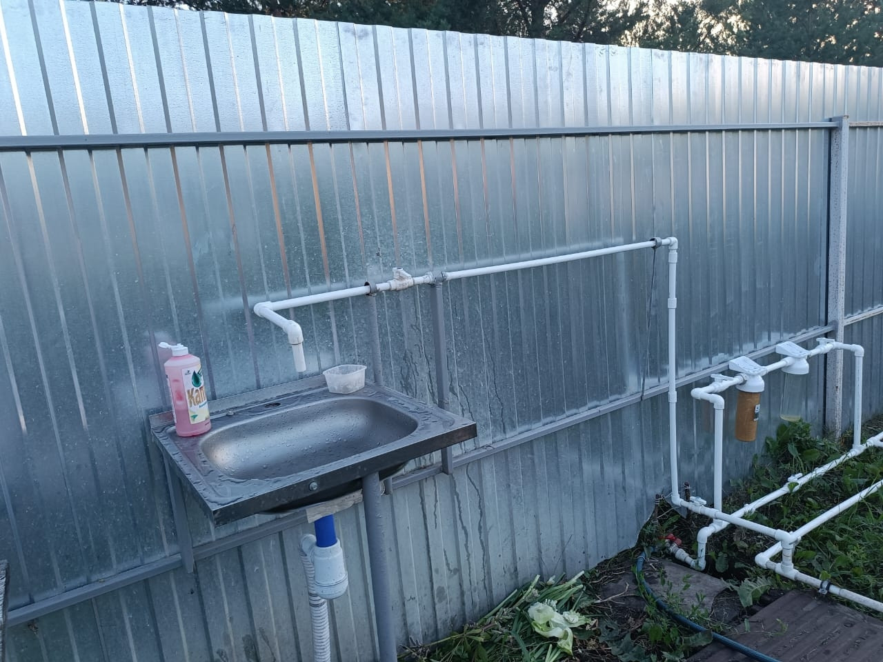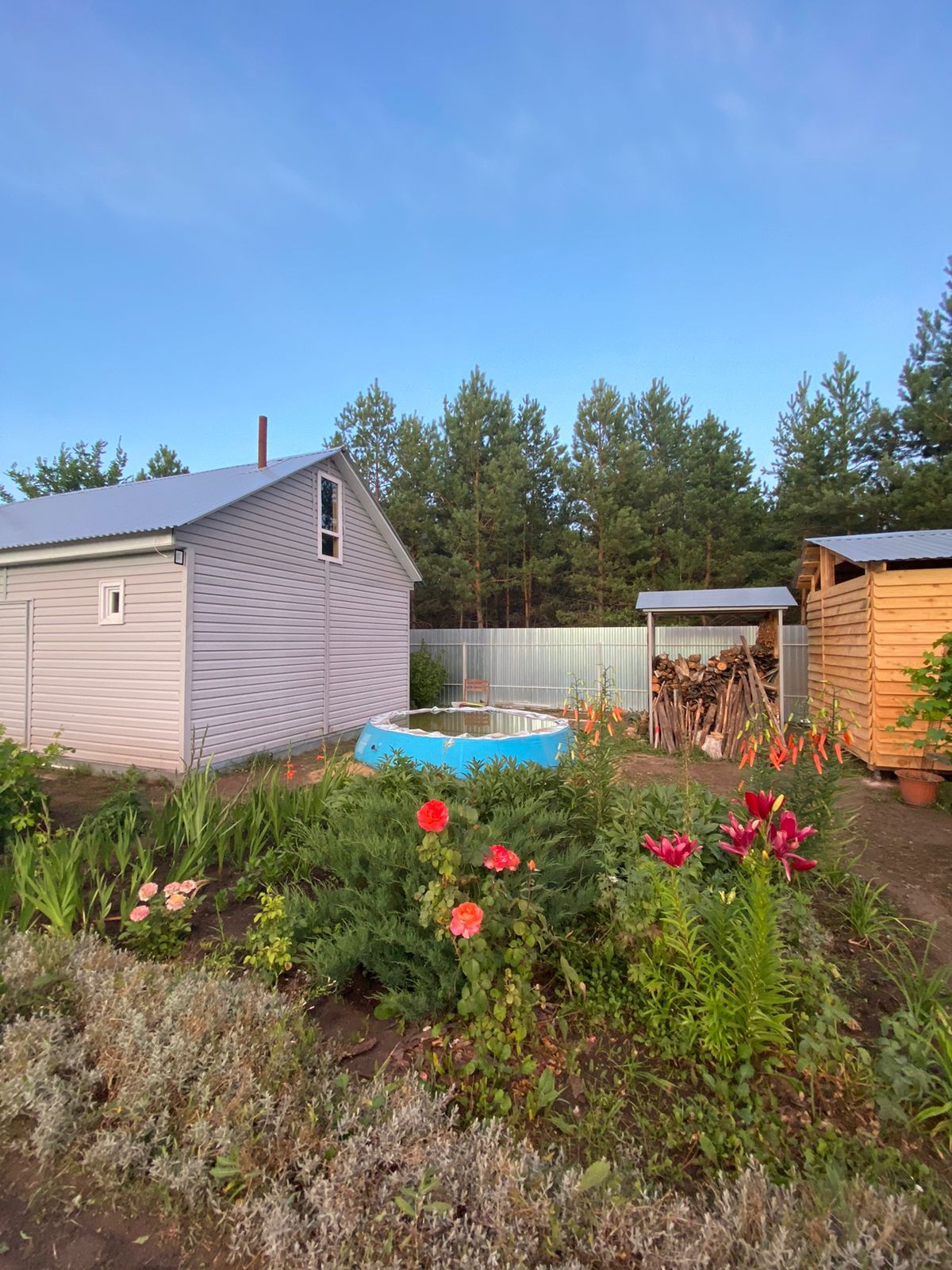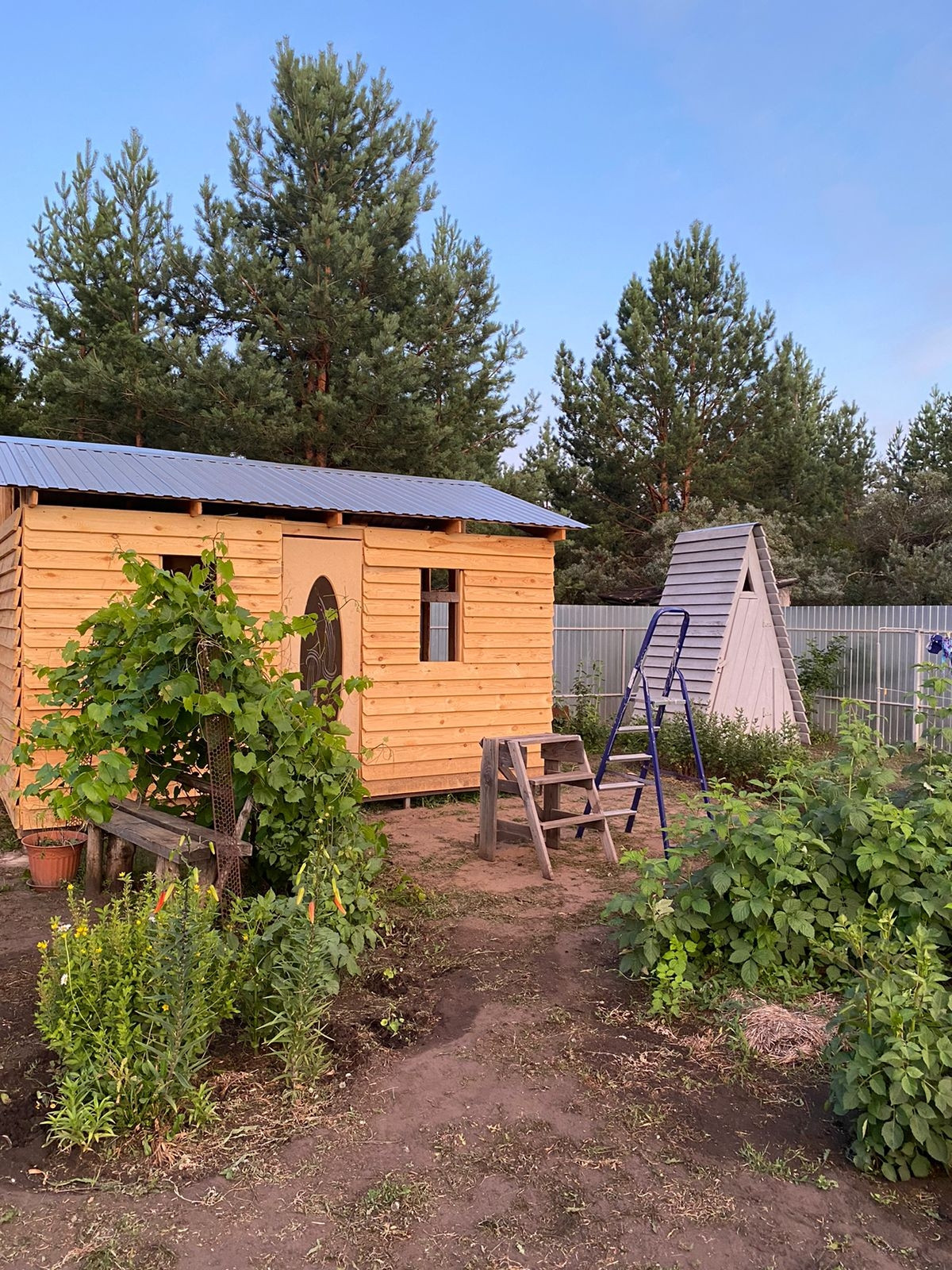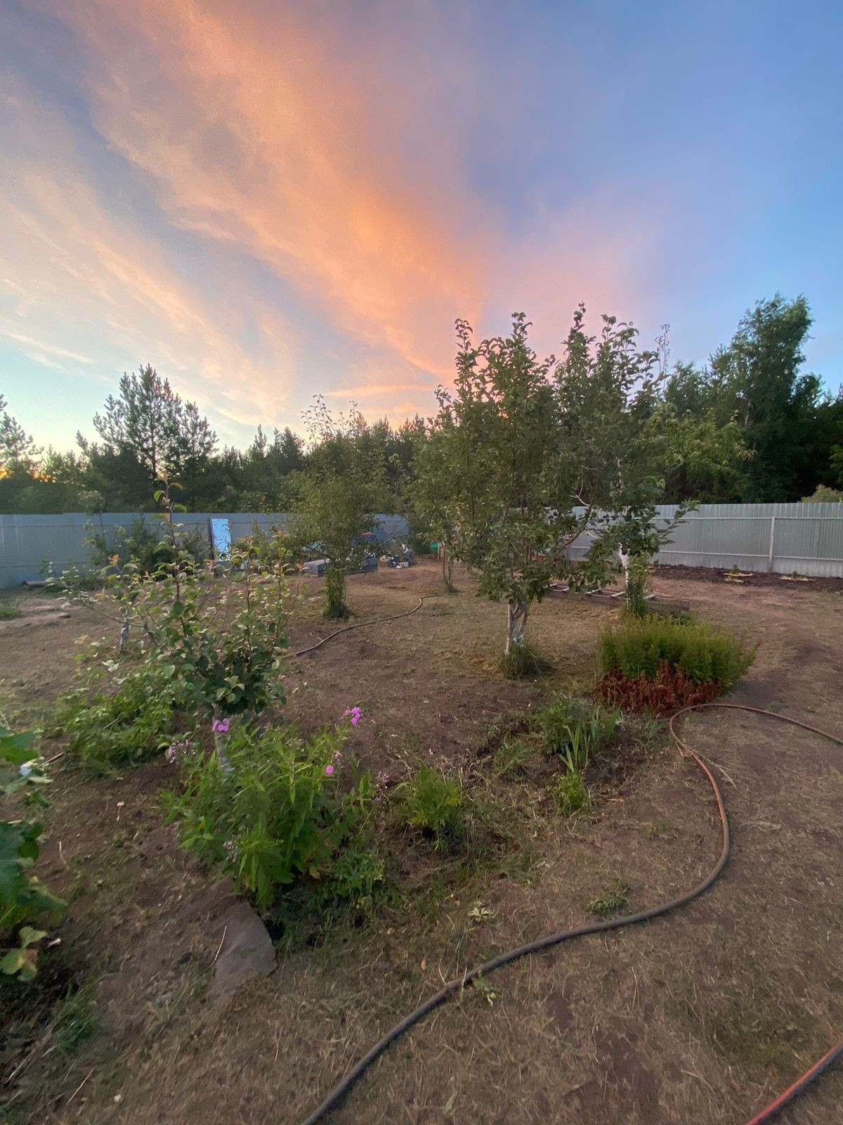 Участок огорожен забором из Профлиста по всему периметру.