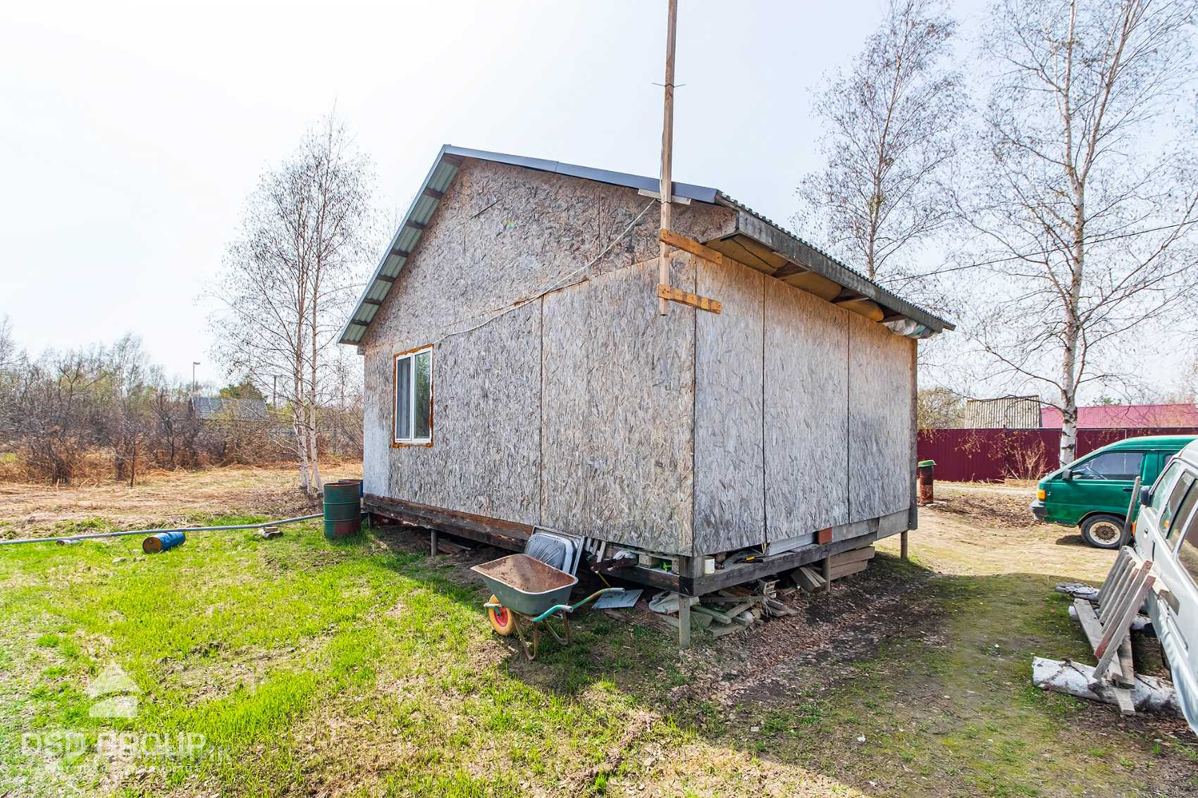 Одноэтажный дом 35 м. кв., на ровном, сухом участке 8 соток. Фундамент дома: винтовой, увязан брусом из листвяка  200*200. Дом обшит OSB. Крыша покрыта метал. профлистом. Под огород отведен не большой участок земли . Земля очень плодородная и отдохнувшая. Есть электричество и ИНТЕРНЕТ.