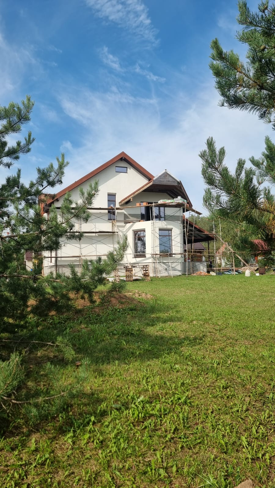 Во дворе участка посажены - сосны, ивы, туи, декоративная черемуха, что придает участку особый уют.