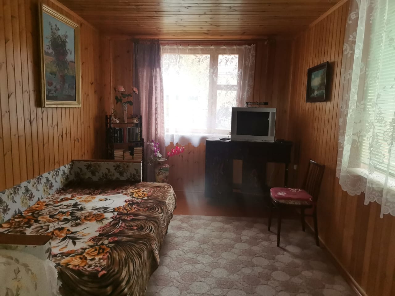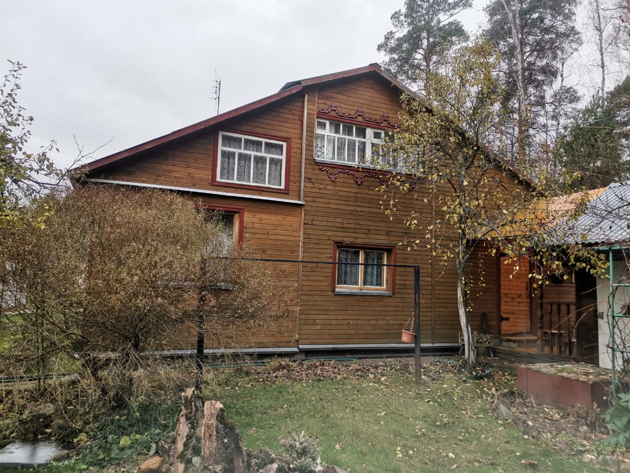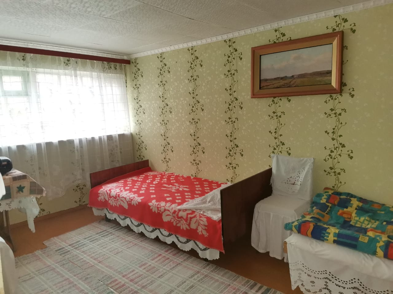 Дом двухэтажный, деревянный, общая площадь - 60 кв.м, жилая 46.5. На первом этаже -оборудованная кухня 9 кв.м. и 3 комнaты(10.5кв.м., 10.5кв.м., 13,5 кв.м.), нa втором этаже комната 12 кв.м. Дом очень уютный, есть русская печь, свет, газ баллонный, вода питьевая - летний водопровод.