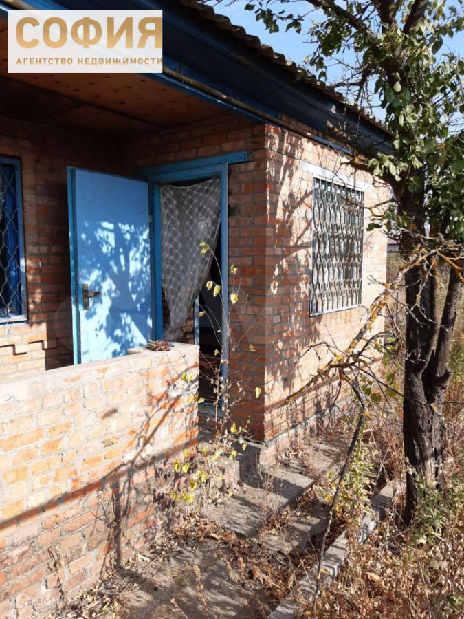 Дом надёжный, кирпичный. Отапливается печкой буржуйкой. Есть погреб. На участке находится бак для воды, каркас для парников и виноградный лозы.