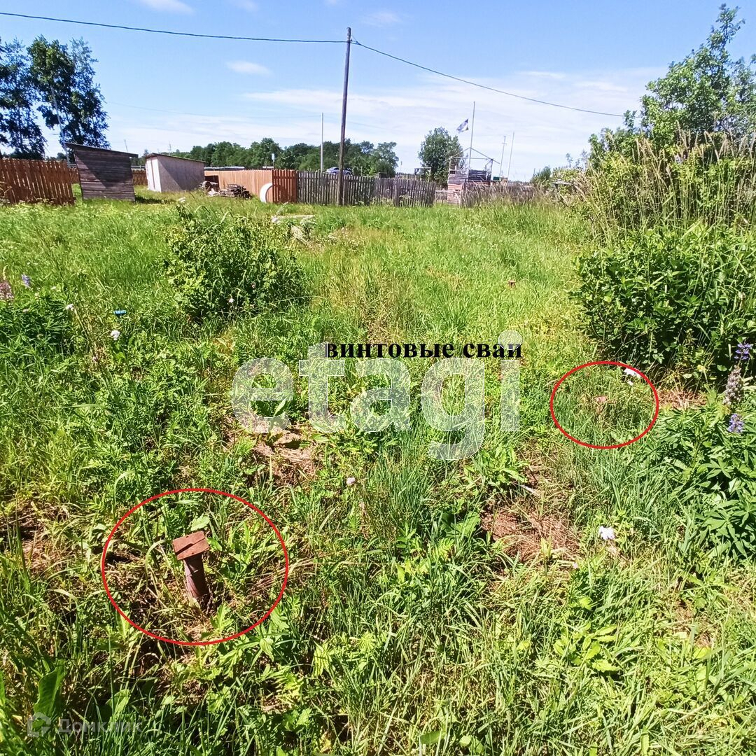 Участок покошен от травы, на участке свайно-винтовой фундамент под модуль из двух бытовок размером 6 на 4,8. Можно построить жилой дом и зарегистрировать его по дачной амнистии.