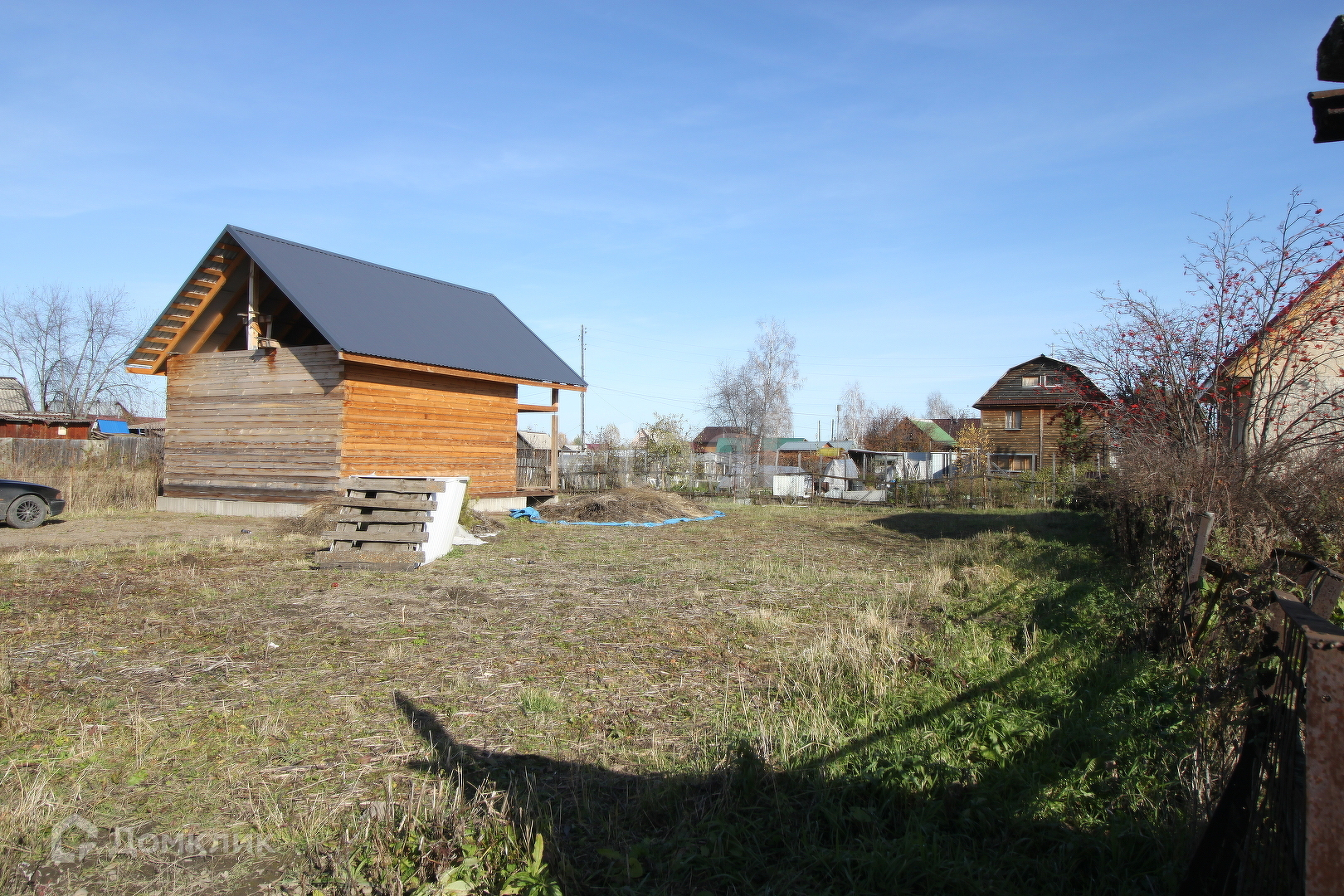 Участок выровнен, огорожен с 3-х сторон соседскими заборами.