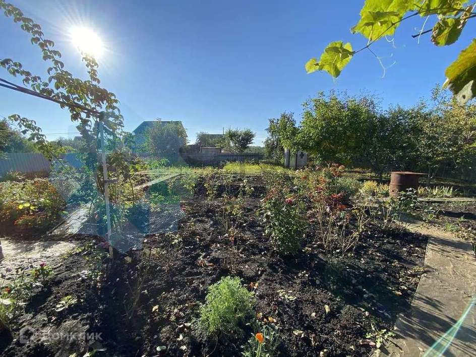 Земля 6 соток (участок ровный), на которой удачно разместили и грядки, и плодовые деревья (сейчас, например, урожай наивкуснейших яблок), и цветники! Есть небольшой навес, который укутан виноградником.
