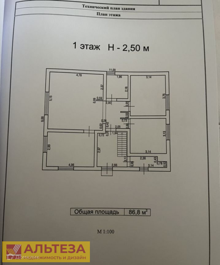 На 1 этаже – кухня-гостиная, санузел, 3 спальни, котельная, прихожая;