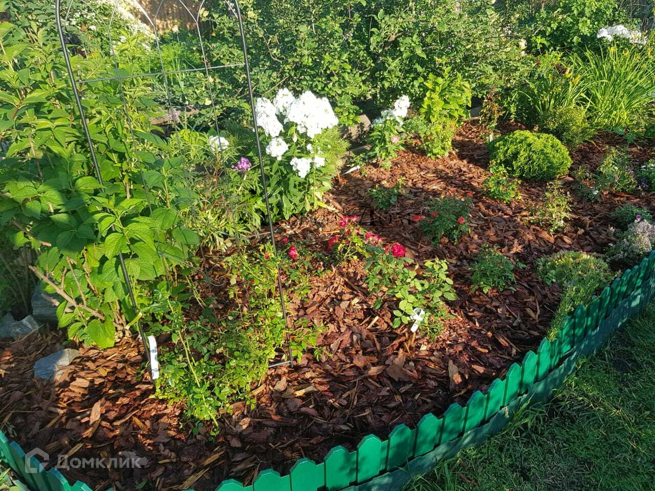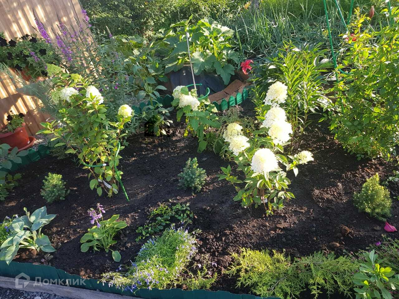 -Участок-сухой, высокий, ухожен, на  земельном участке посажены множество плодоносящихся деревьев- яблони, слива, вишня, смородина, и множество красивых многолетних цветов.