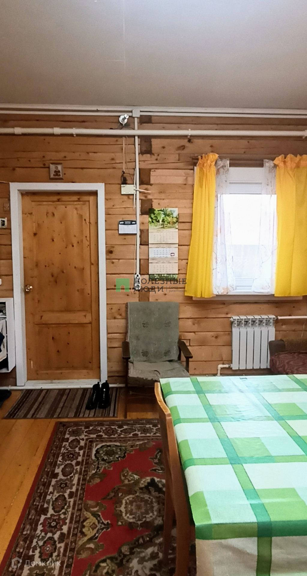 Дом размером 6*8, из бруса 150*150, на ленточном фундаменте, утеплен базальтовым волокном 50мм, и обшит сайдингом. Крыша утеплена и покрыта профнастилом, качественно смонтированы подшивы и сливная система. В доме установлены пластиковые окна с двухкамерными стеклопакетами, закрываются рольставнями. Установлен твердотопливный котёл, который можно поддерживать электричеством, с использованием Wi-Fi, под каждым окном- биметаллические радиаторы отопления. По периметру участка установлено видеонаблюдение, в доме- сигнализация, проведён интернет. На первом этаже расположена прихожая, кухня-гостиная 20м2, спальня 24м2, санузел и котельная, потолки в доме почти 3 метра! На второй этаж ведёт деревянная лестница, этаж мансардный, утепленный, одна комната 22м2, в нишах располагаются места хранения.