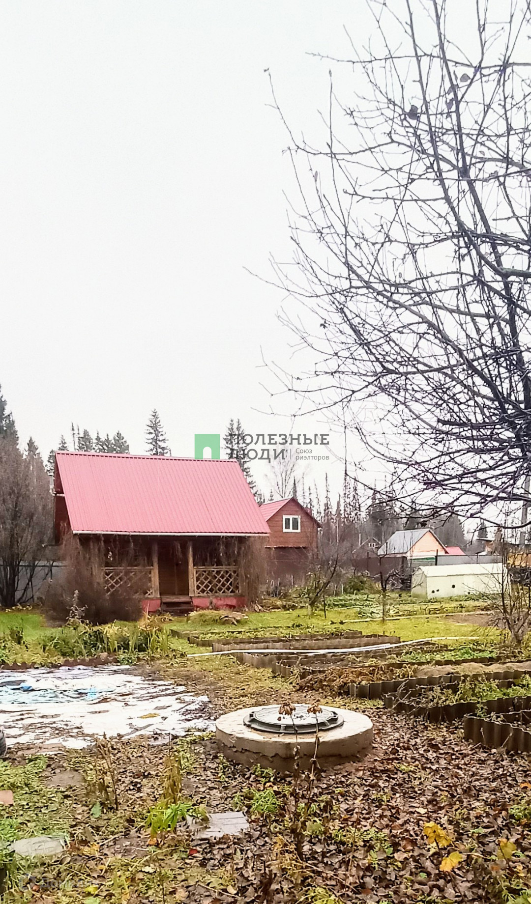 Участок состоит из двух, составляет 15 соток. По периметру установлена дренажная система, чтобы не было застоя воды, канализация- выгребная яма, а также колодец, вода из которого заведена в дом и баню. Центральный летний водопровод двойной- для питья и для хоз.нужд. Имеются посадки культурных и декоративных растений ( яблоня, груша, алыча, вишня, смородина и пр, туи, можжевельники и тд), посажен и ухожен газон, есть теплица из поликарбоната и два парника, а также много места для посадки картофеля. Весь участок огорожен забором, половина из профнастила, половина из сетки-рабицы, установлены распашные ворота.