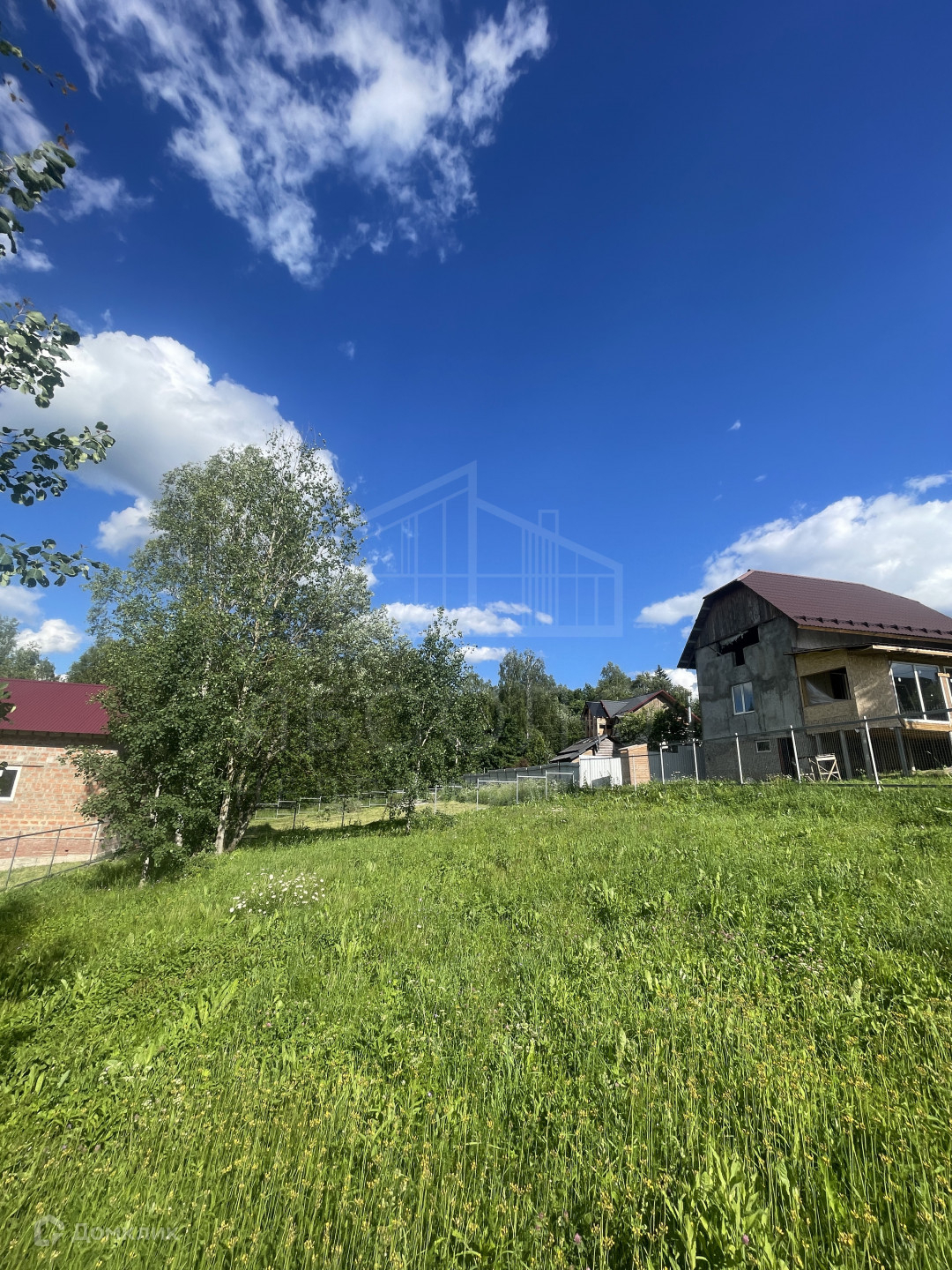 Участок огорожен забором с 3-х сторон.