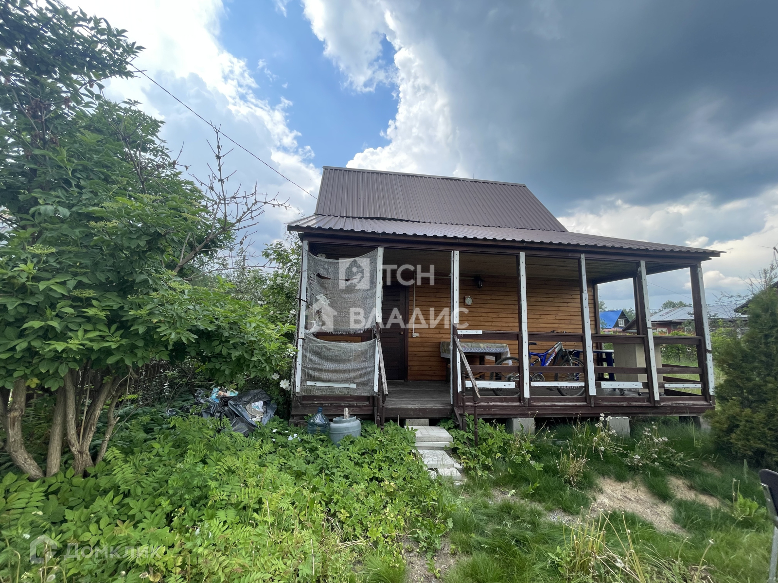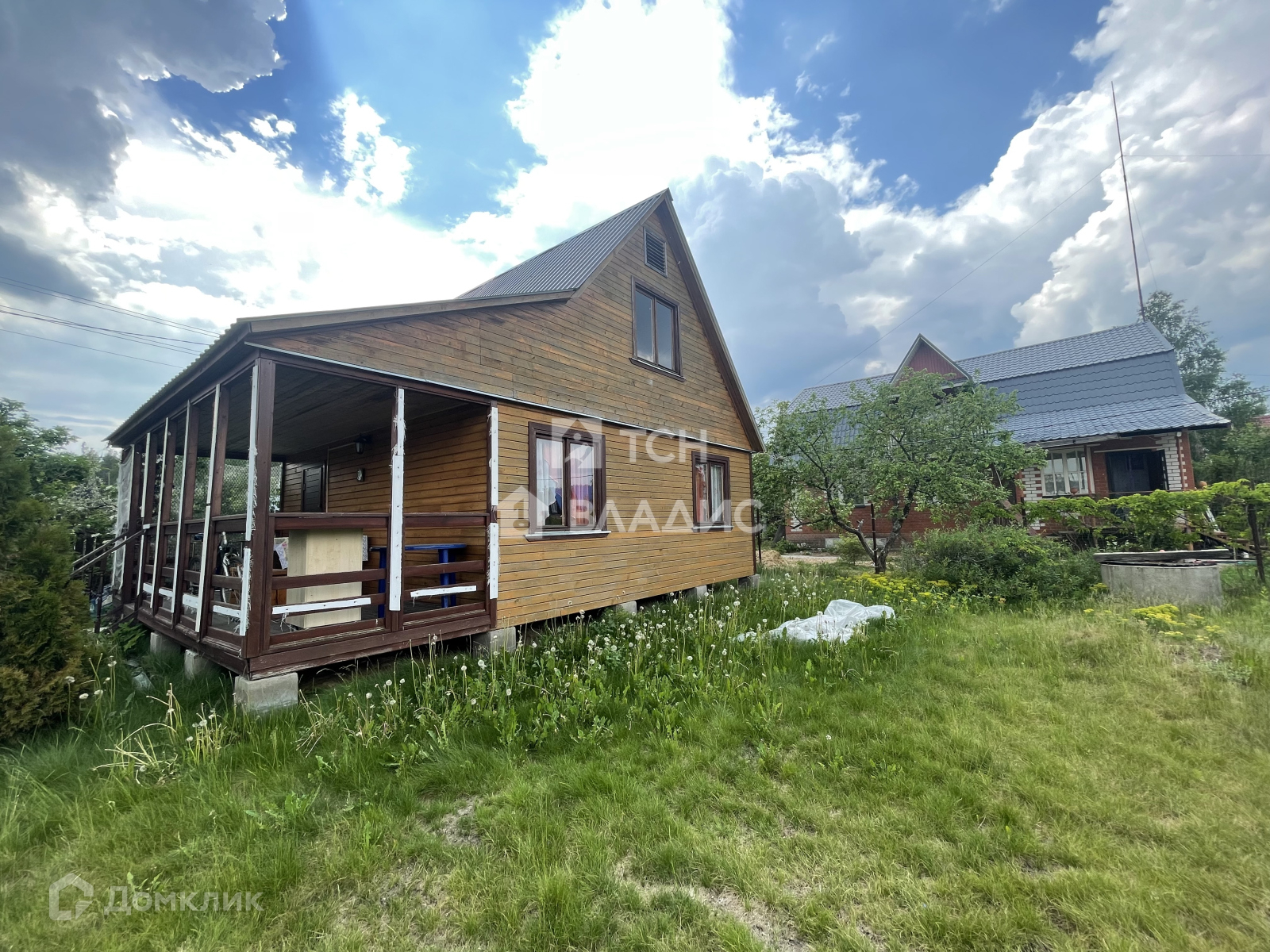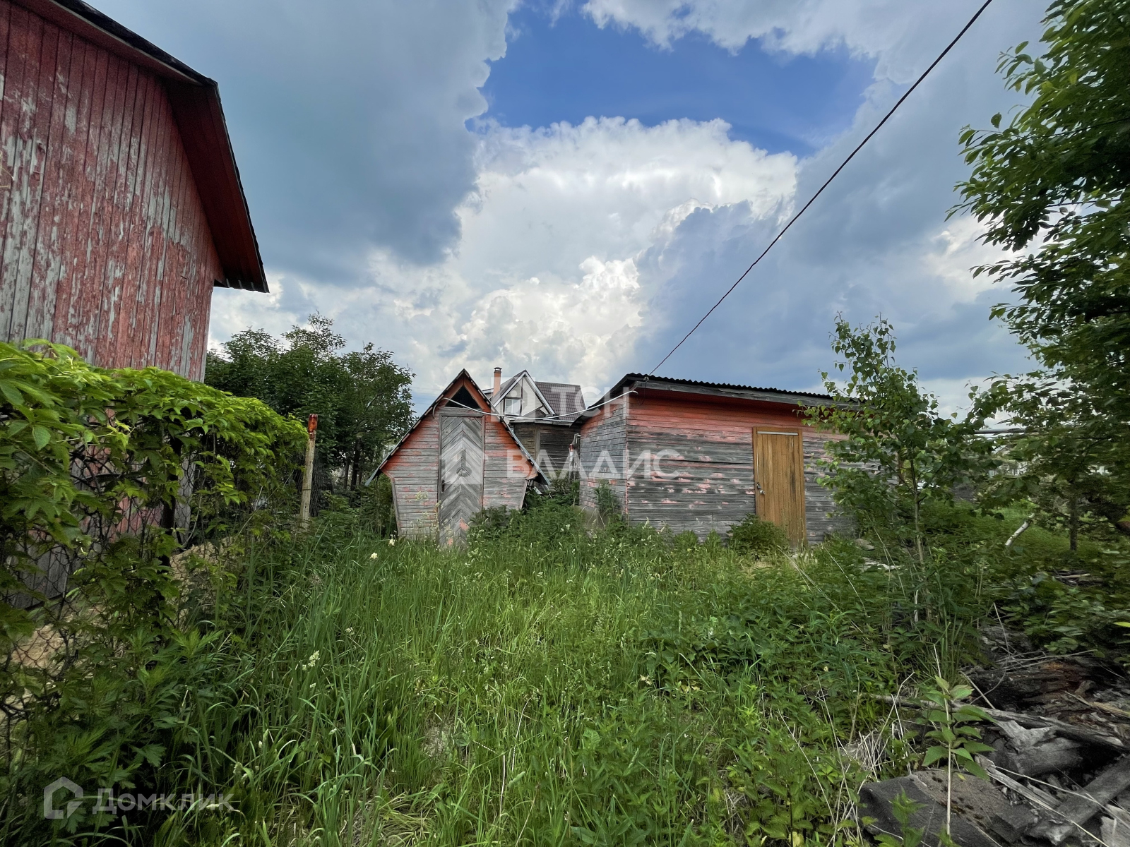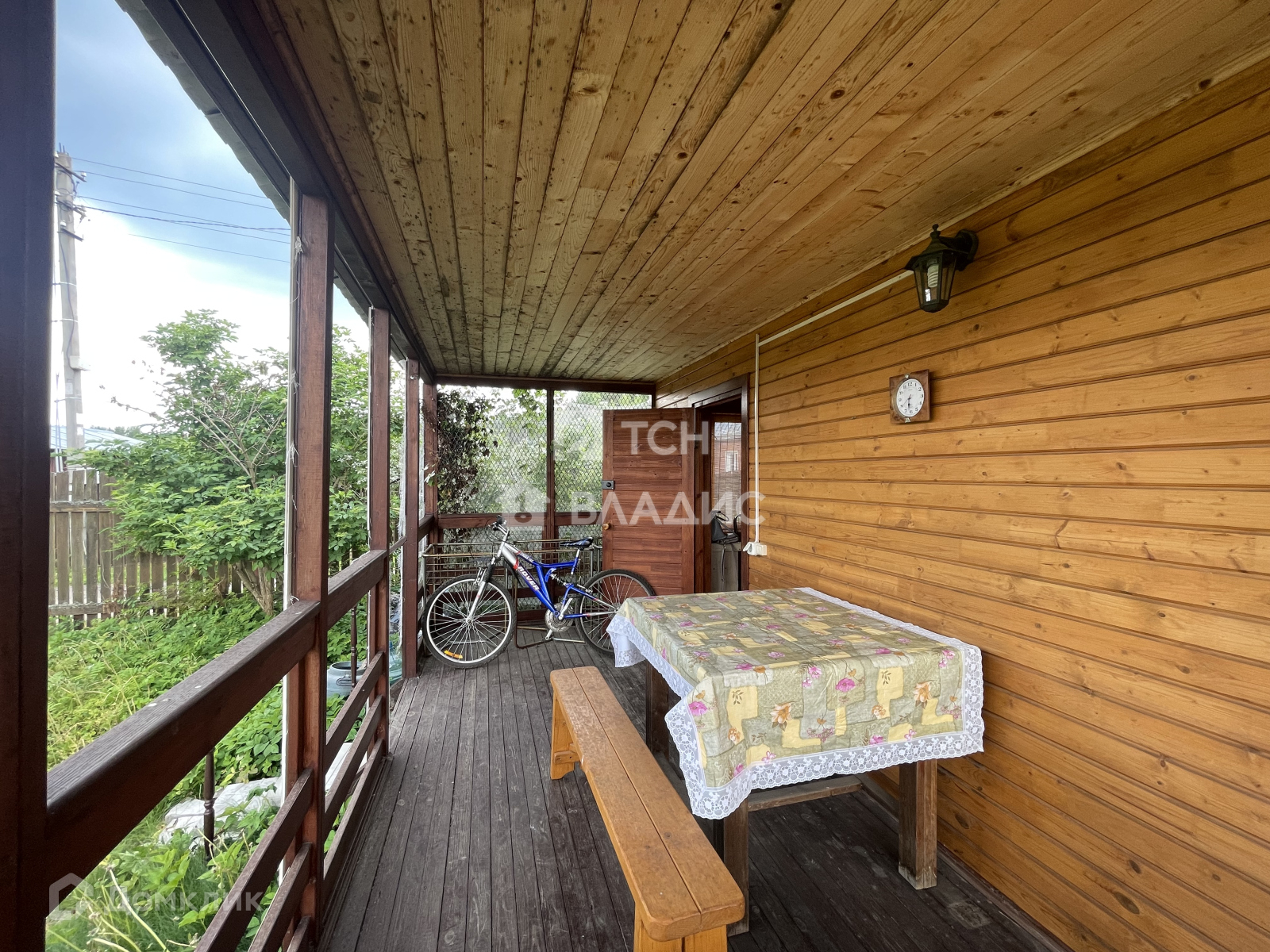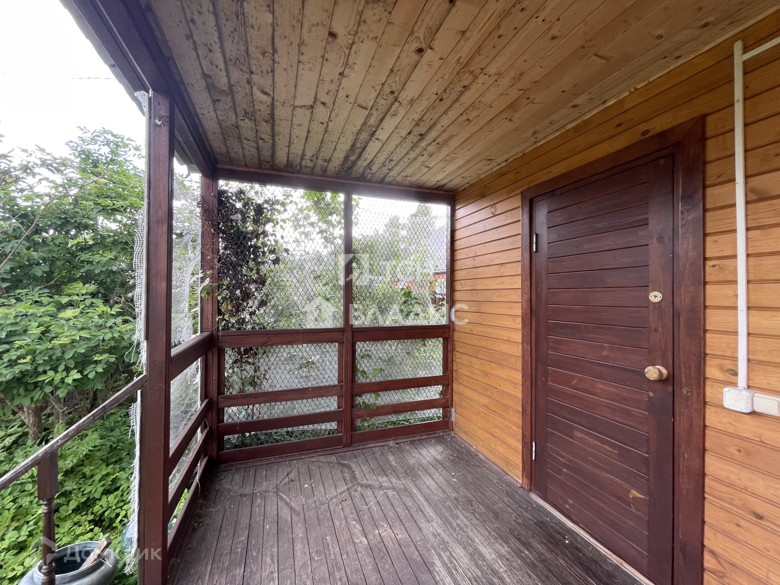 Участок украшают плодоносящие яблони, ароматная облепиха и ягодные кусты (смородина, крыжовник), создающие уют и предоставляющие свежие фрукты прямо с грядки. Забор из натурального дерева гармонично вписывается в ландшафт, а соседские участки огорожены рабицей для дополнительной приватности.
