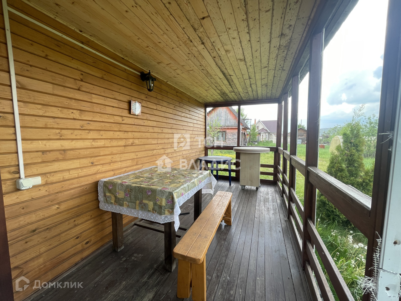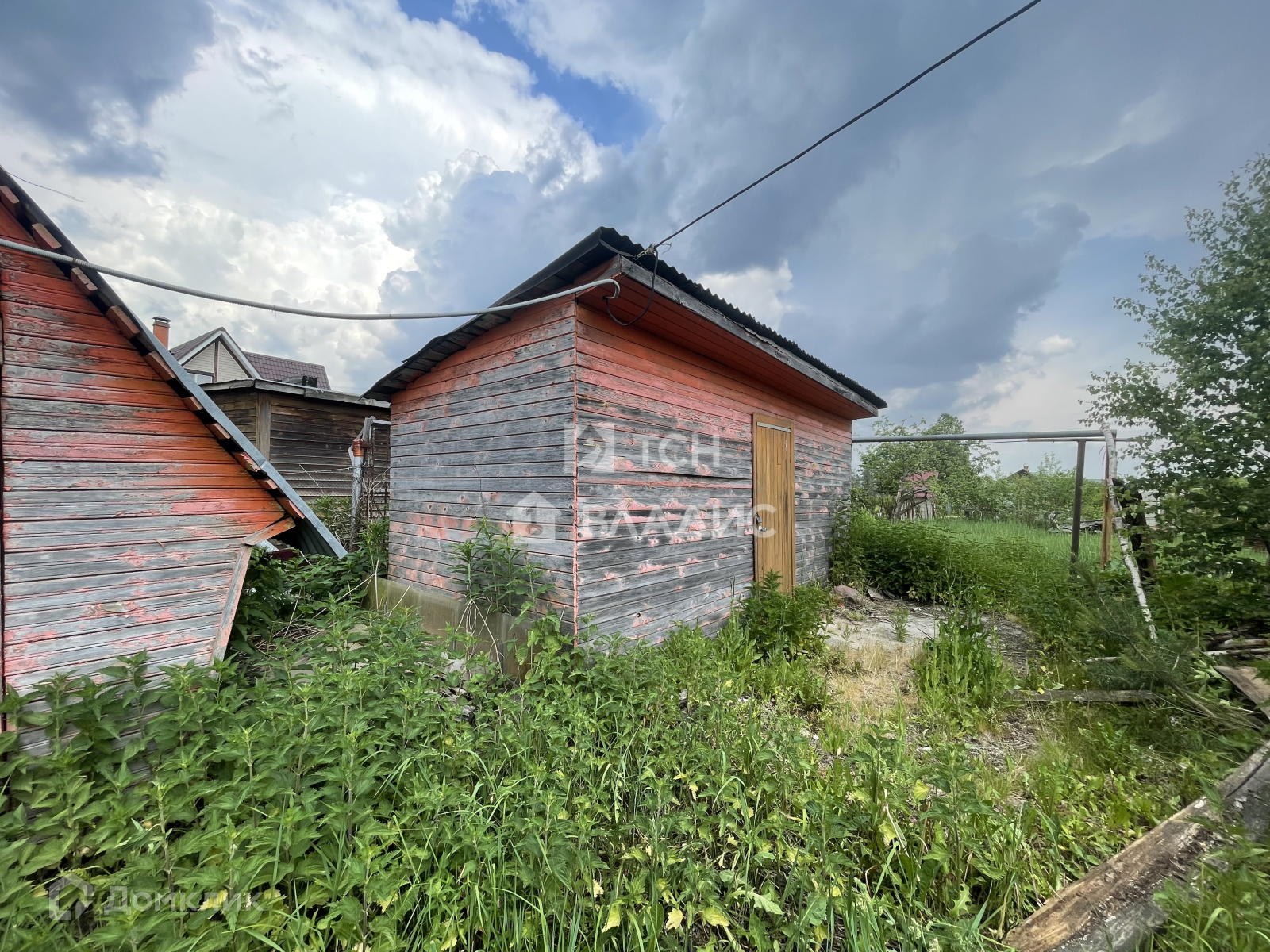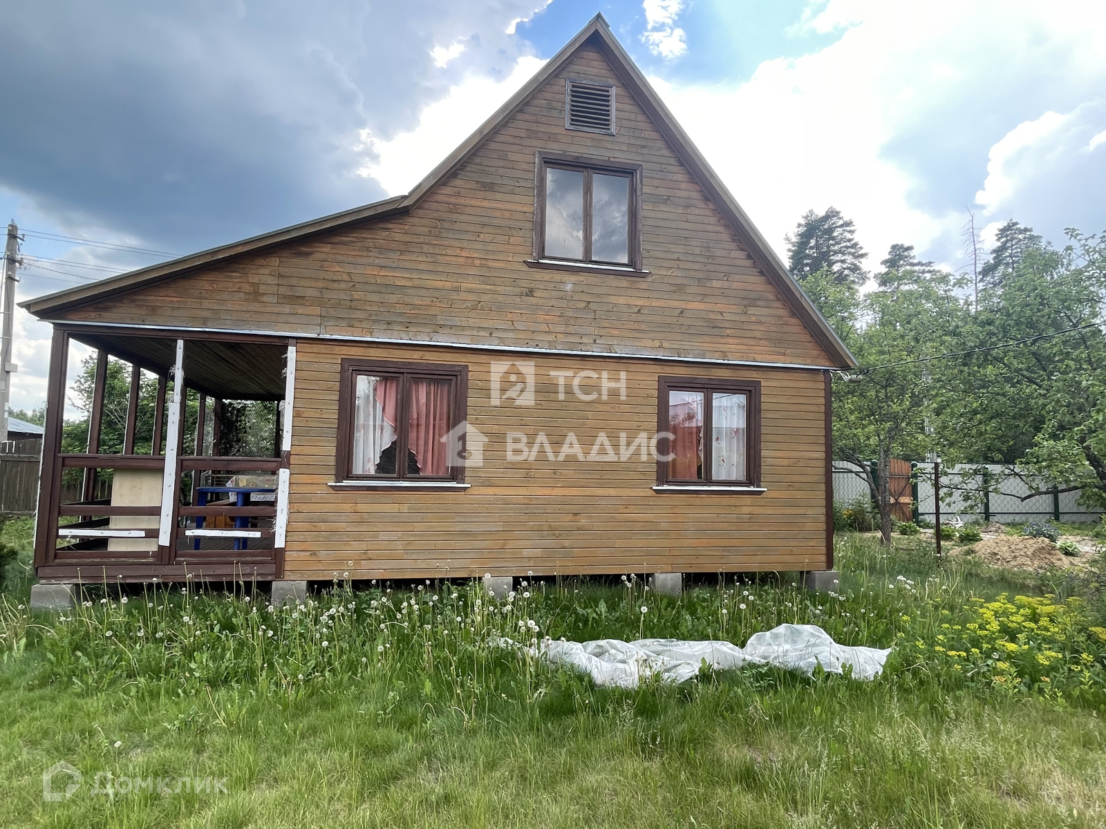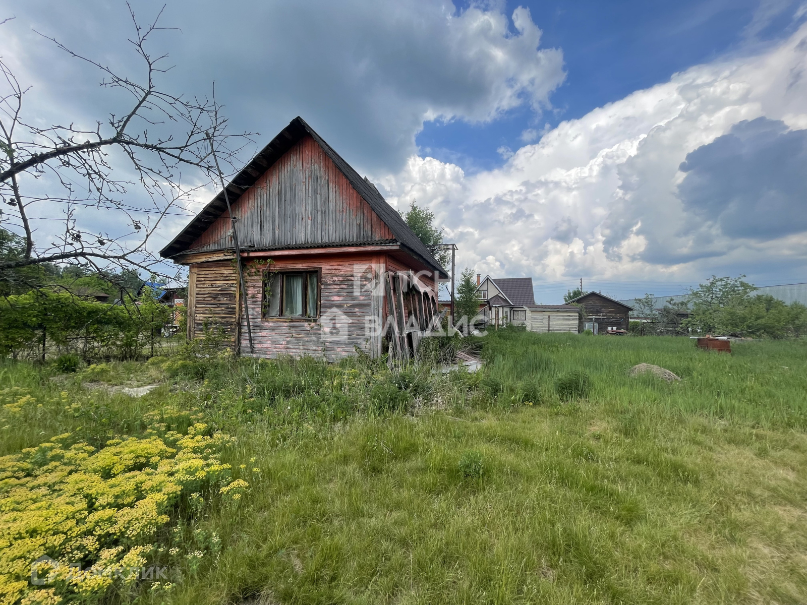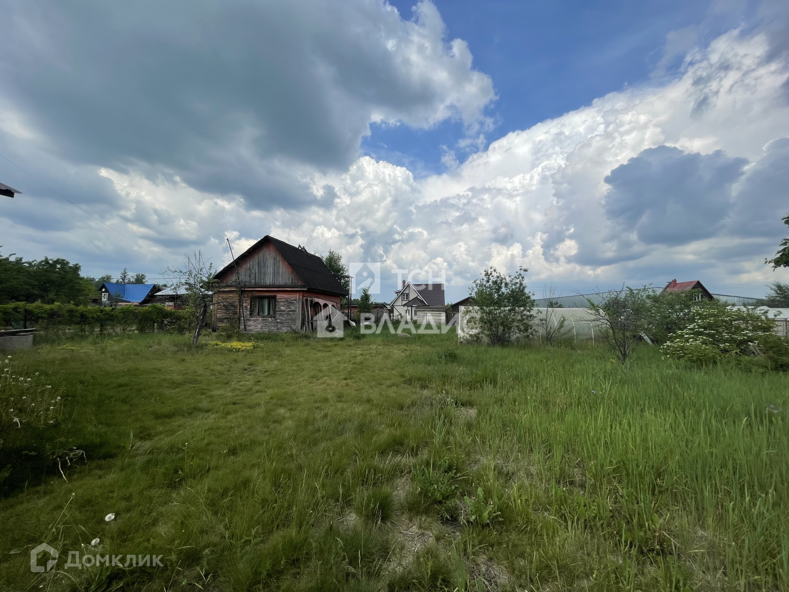 Участок украшают плодоносящие яблони, ароматная облепиха и ягодные кусты (смородина, крыжовник), создающие уют и предоставляющие свежие фрукты прямо с грядки. Забор из натурального дерева гармонично вписывается в ландшафт, а соседские участки огорожены рабицей для дополнительной приватности.
