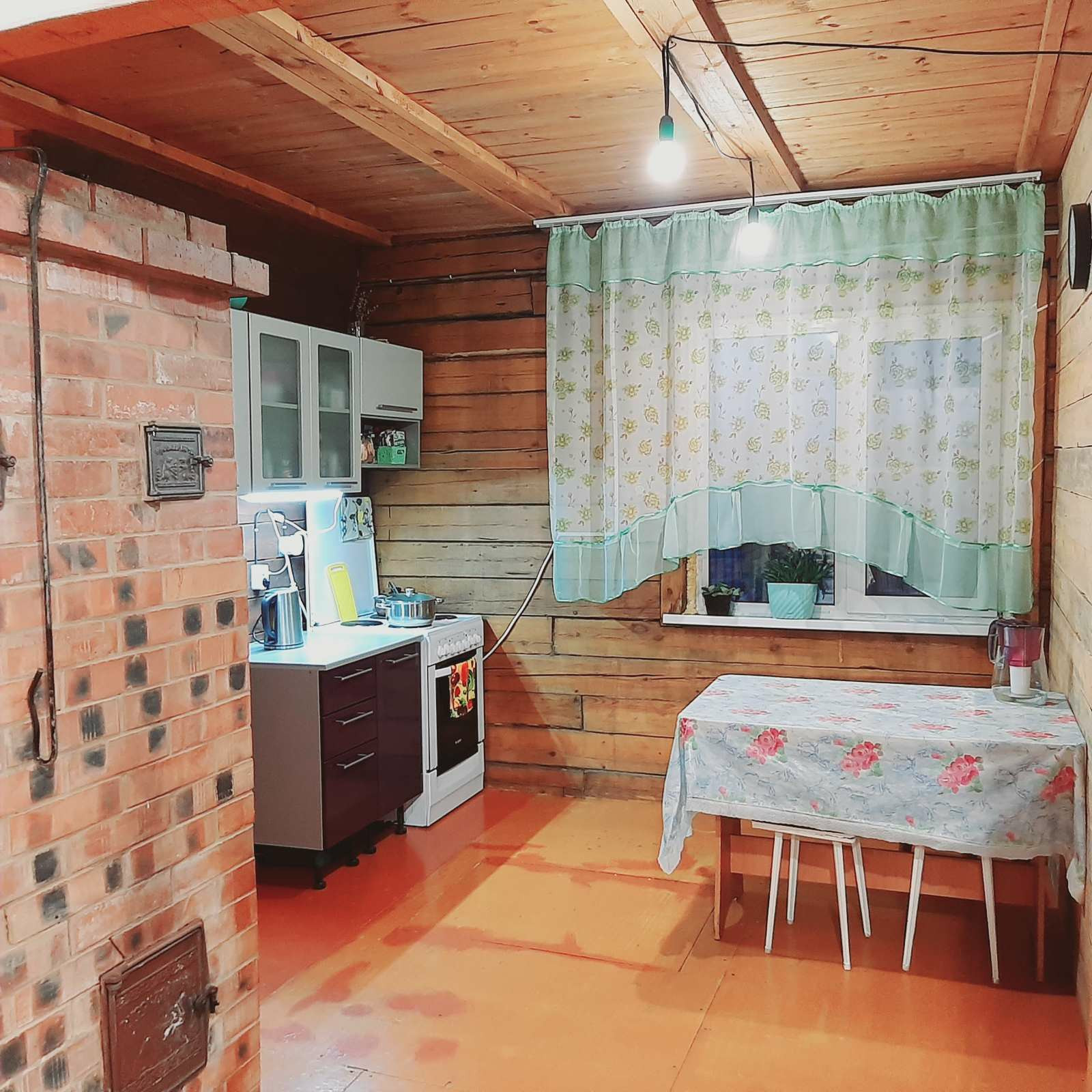 - полы доска пятёрка, сверху фанера(окрашенная)