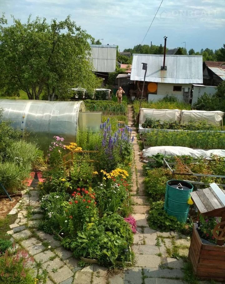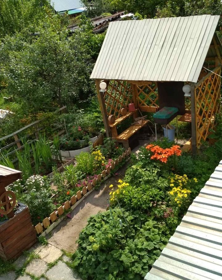 На участке есть теплица, деревья и кустарники.
