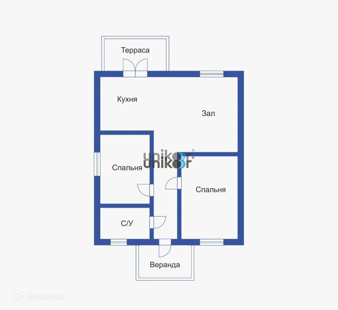 Планировка: кухня-гостиная, две спальные комнаты, санузел.