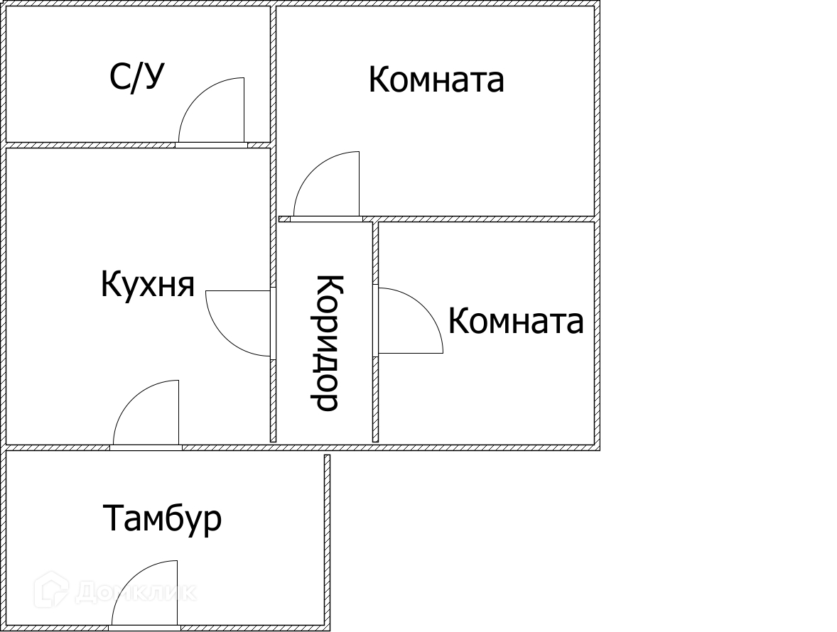 Входная группа, просторная прихожая, кухня, две спальные комнаты, санузел.