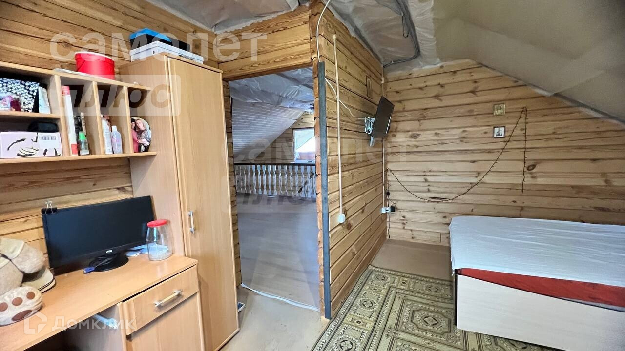 Дом не стандартной планировки, на втором этаже три комнаты, место отдыха и выход на балкон. На первом этаже находится гостиная, столовая, кухня и сан.узел.