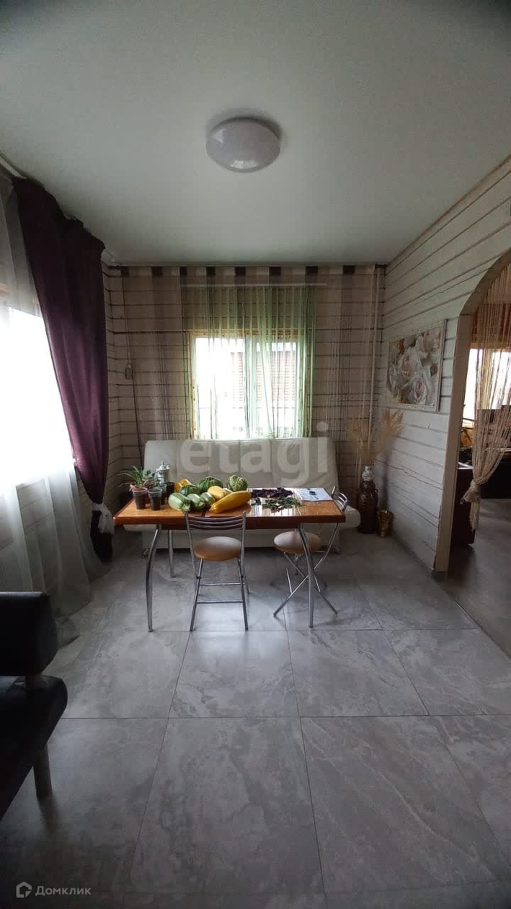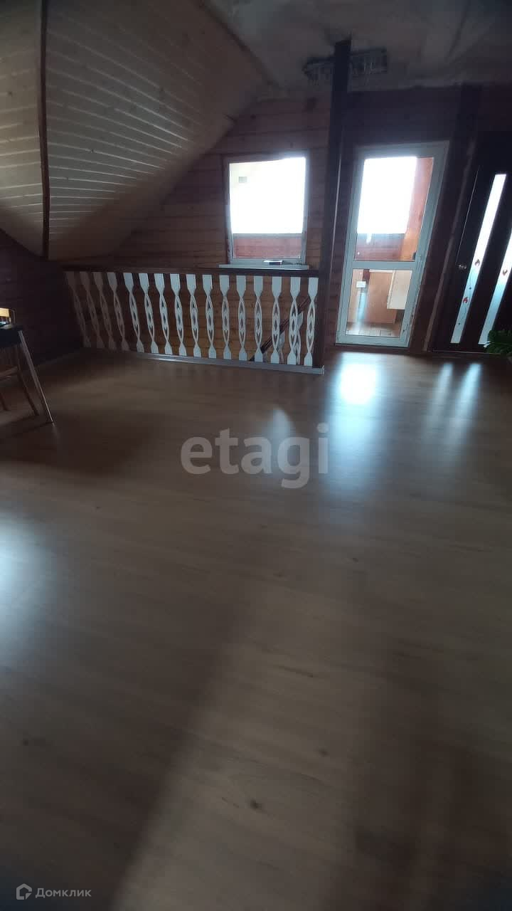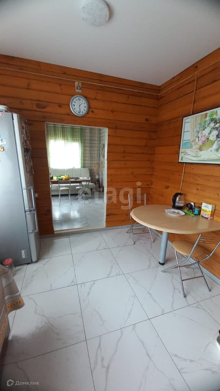 Это 2-х этажный экологичный дом из дерева, облицованный кирпичём, с водоснабжением и канализацией. На первом этаже разместилась просторная кухня-гостиная с выходом на приусадебный участок 9 сот.