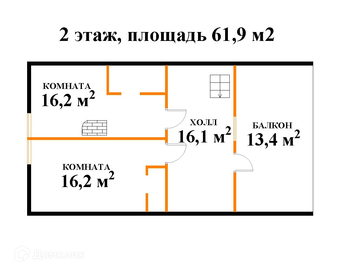 Жилая площадь 62.6 м2