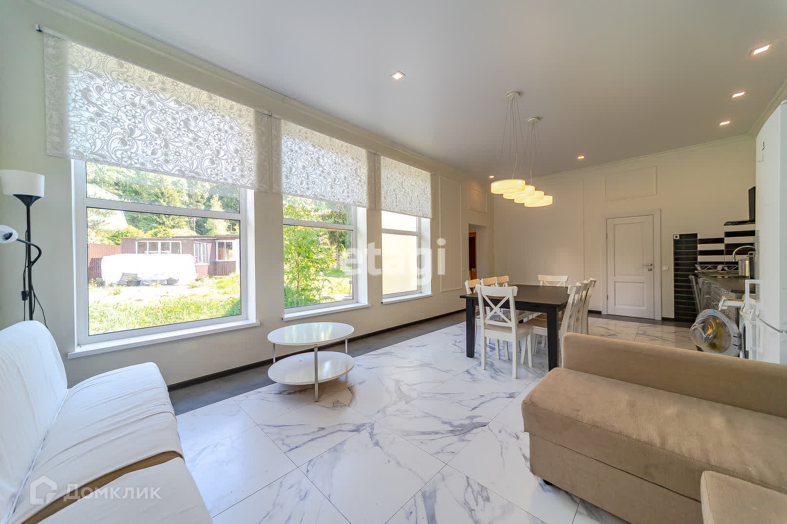 Дом приветствует своих гостей уютной гостиной, где можно провести вечера в компании друзей или семьи. Три уютные спальни обеспечат комфорт и уединение, а просторная кухня-гостиная станет местом для приготовления вкусных ужинов и семейных посиделок.