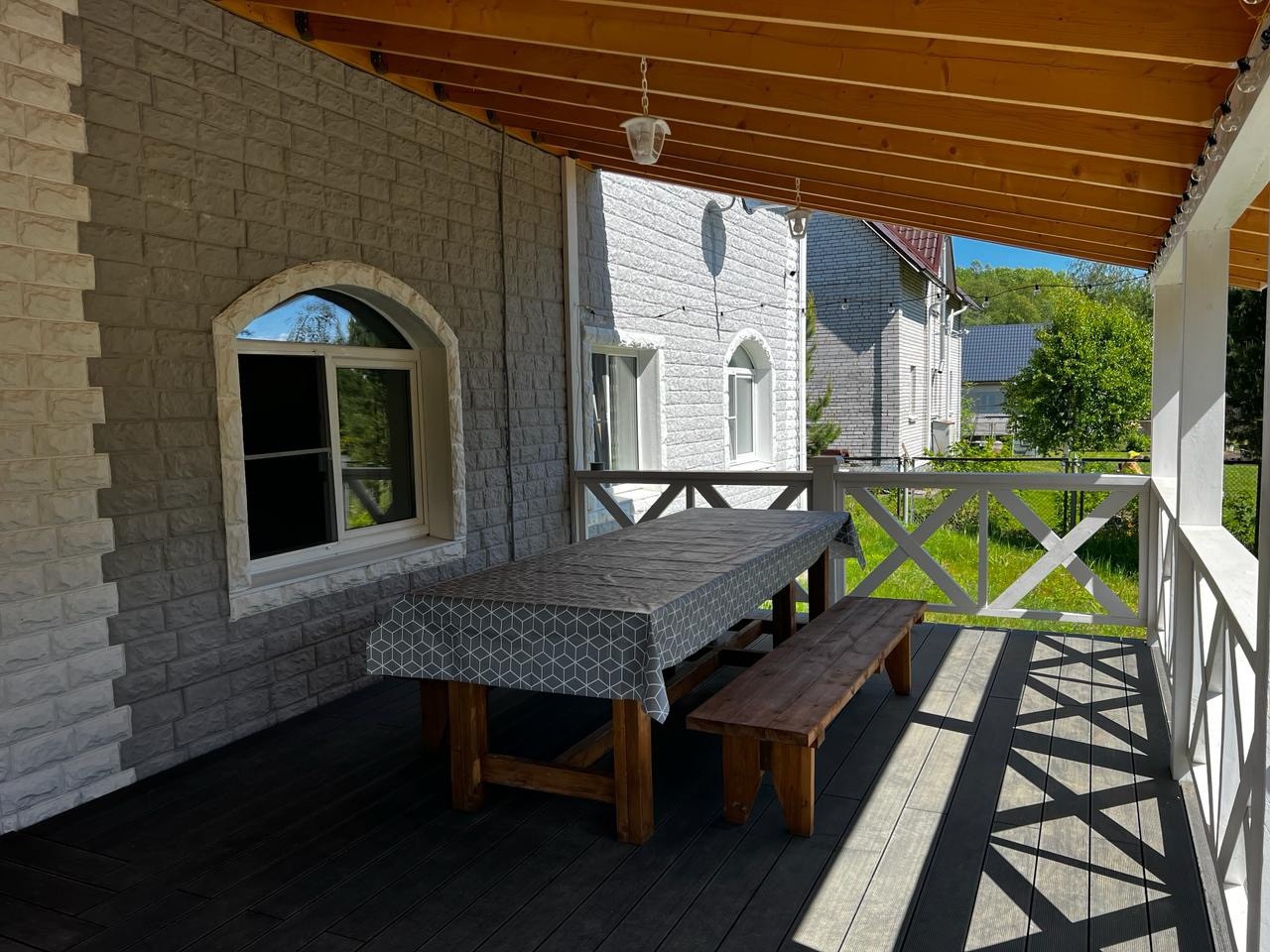 ДОМ два этажа, общей площадью 240 кв.м. из КИРПИЧА с высококачественной отделкой , обшит цементной плиткой с утеплителем. Уютный современный стиль. Функционально продуман и с любовью отделан для себя каждый метр. В ДОМЕ частично остается мебель, техника, текстиль. Кухня встроенная укомплектована: электрическая плита, духовка, холодильником. Сан. узл совмещен с душевой кабиной с бойлером и туалетом, подача воды скважина. Канализация септик. Отопление электрокотел фирмы Protherm , радиаторы с терможидкостью . При необходимости можно отапливать двумя действующими дровяными печами расположенными на кухне и в санузле . Электричество 15 кВт. Но есть возможность добавить еще 15 кВт, так как два участка . ПЛАНИРОВКА: Этаж-1; гостиная с действующем камином 30.0 кв.м. , кухня- столовая 24.0 кв. м, санузел, коридор прихожая. Этаж -2 Три изолированные спальни ( 36.0-19.0-32.0 кв.м.). Из кухни сделан выход на крытую террасу площадью 68 кВм. Покрытие терассная доска. Окна во всем доме заменены в 2021 г, стеклопакеты фирмы Rehau. Имеется мансардный этаж (чердак) сухой, не отапливаемый, используется для хранения вещей. В гараже имеется комната для хранения заготовок и овощей (погреб). Установлено видеонаблюдение с выводом на телефон.