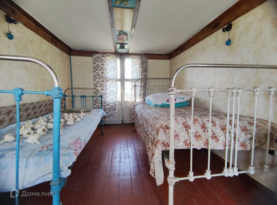 В доме 2 этажа, на 1м 3 комнаты, а на 2м одна большая комната, в каждой есть спальные места. Материал стен дома - сборно-щитовой (дерево).