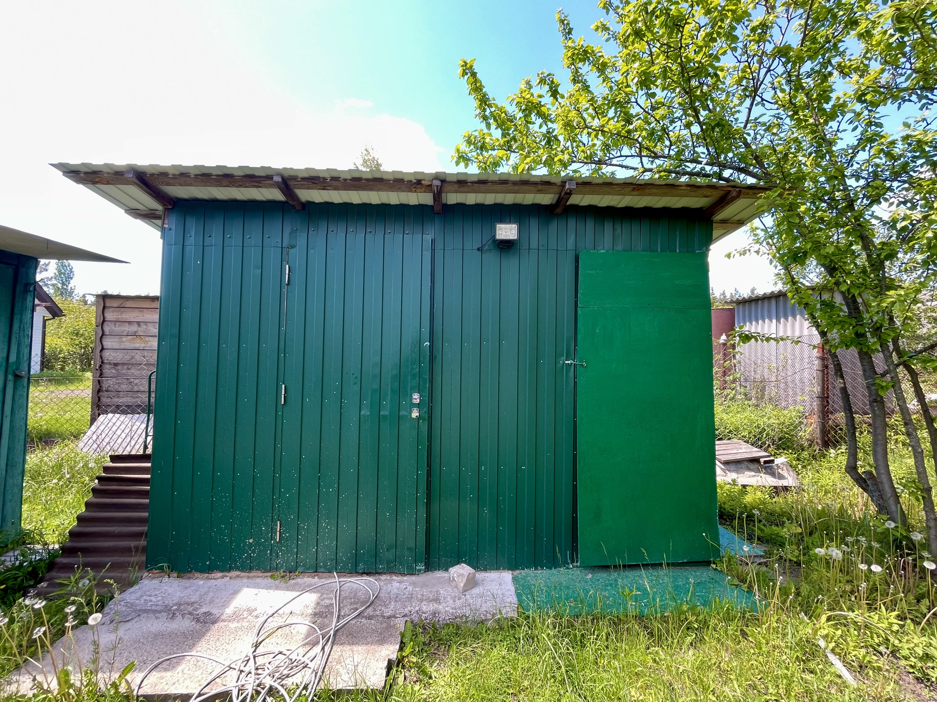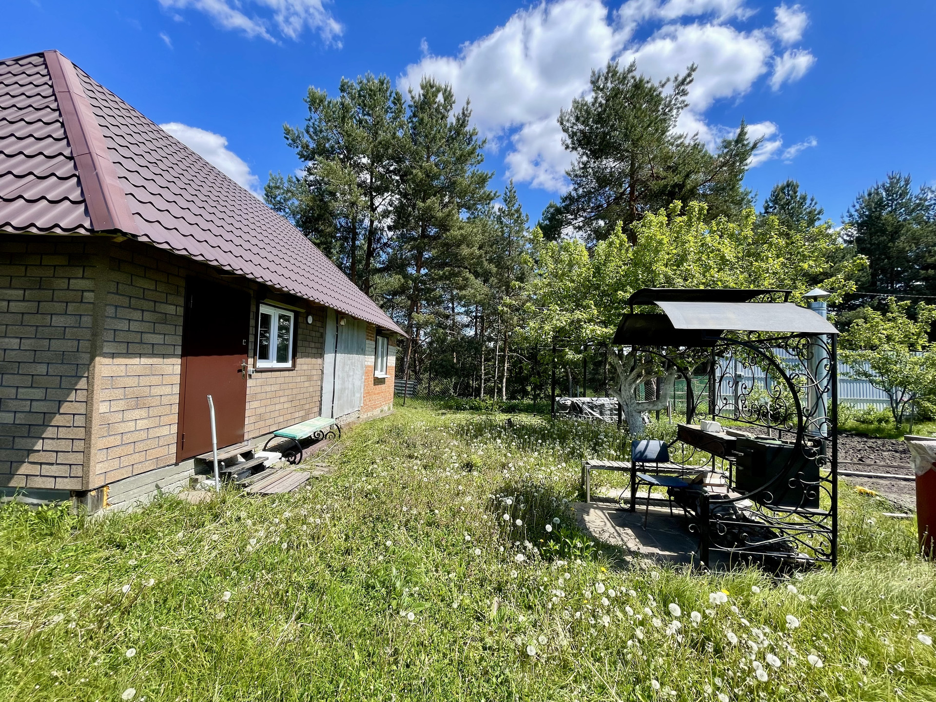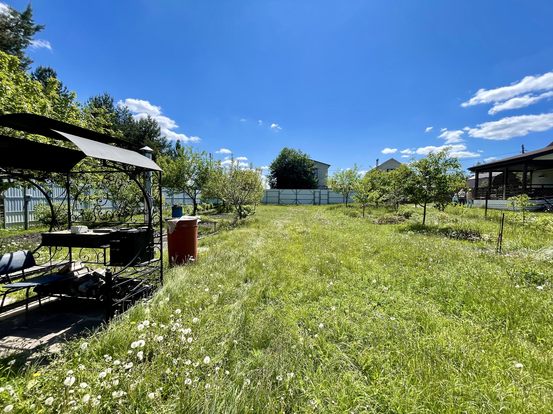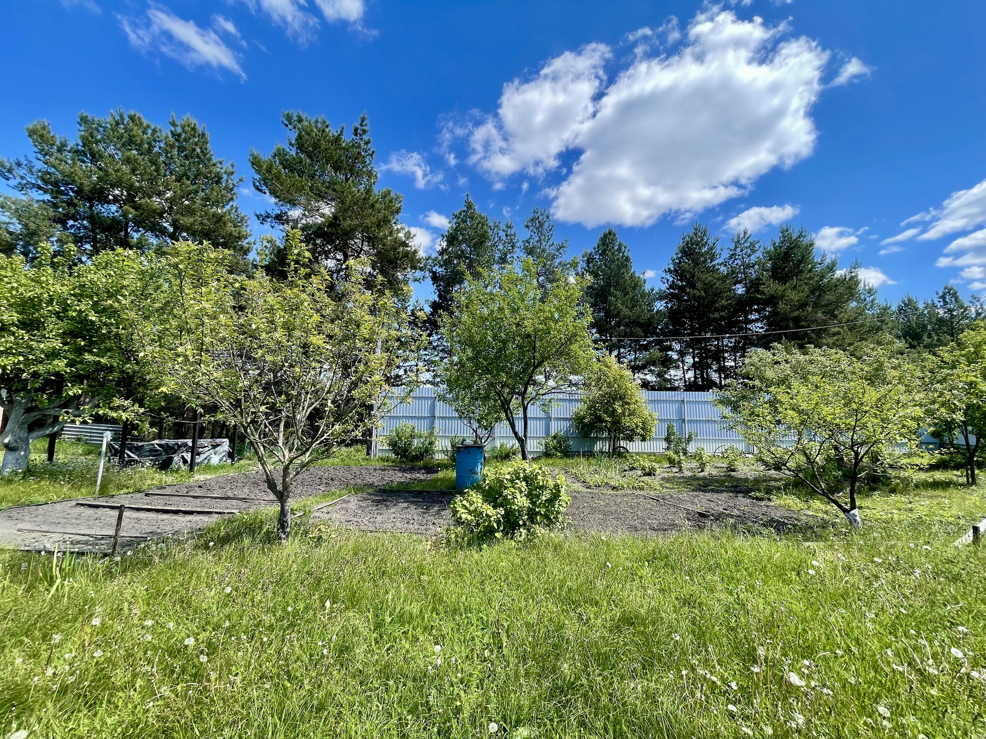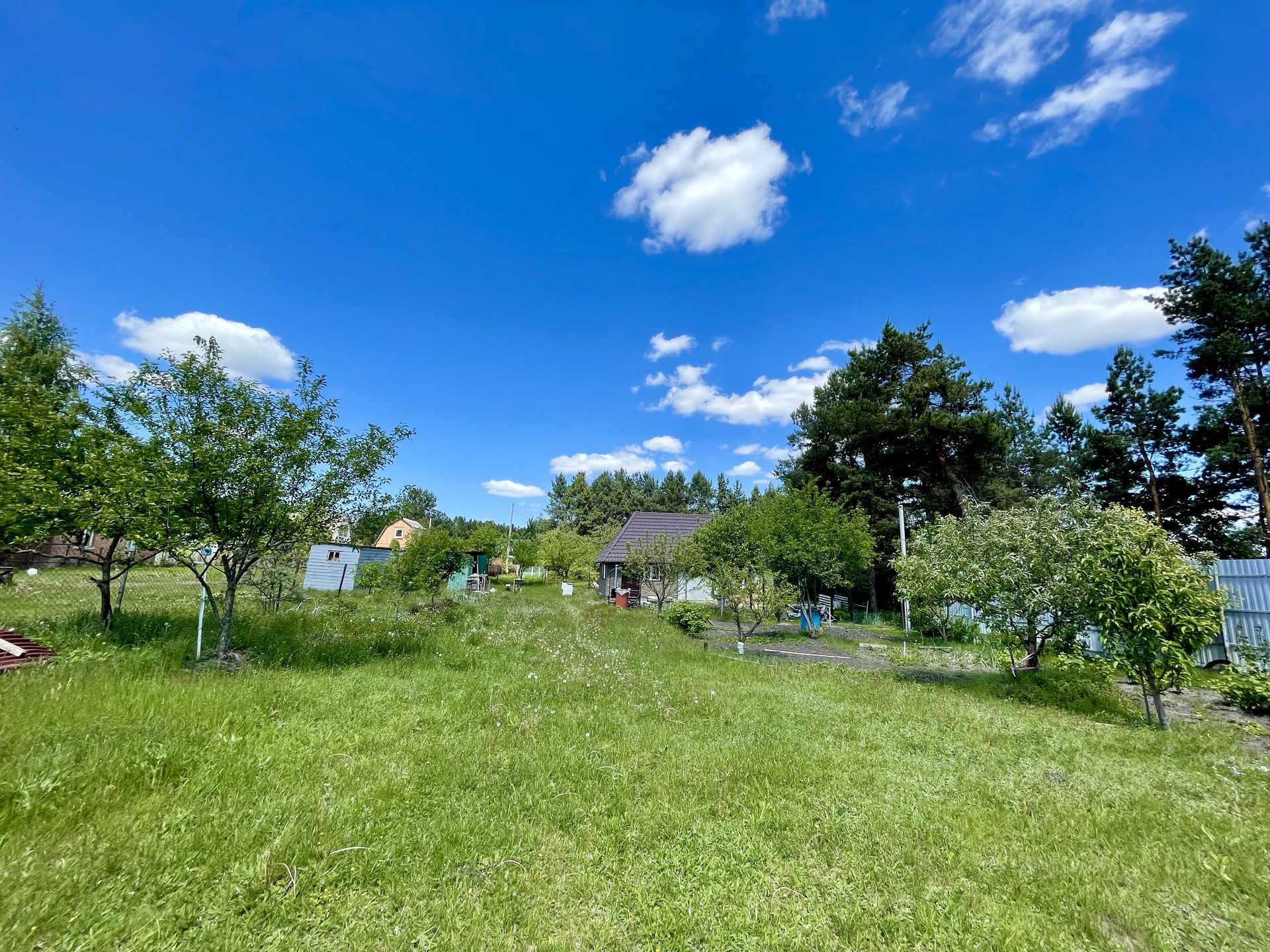 Участок ровный, правильной формы, ухожен. Растут плодовые деревья, кустарники, есть зона для мангала. Огорожен забором. Есть хозпостройки. Асфальтированная дорога, зимой чистят снег.