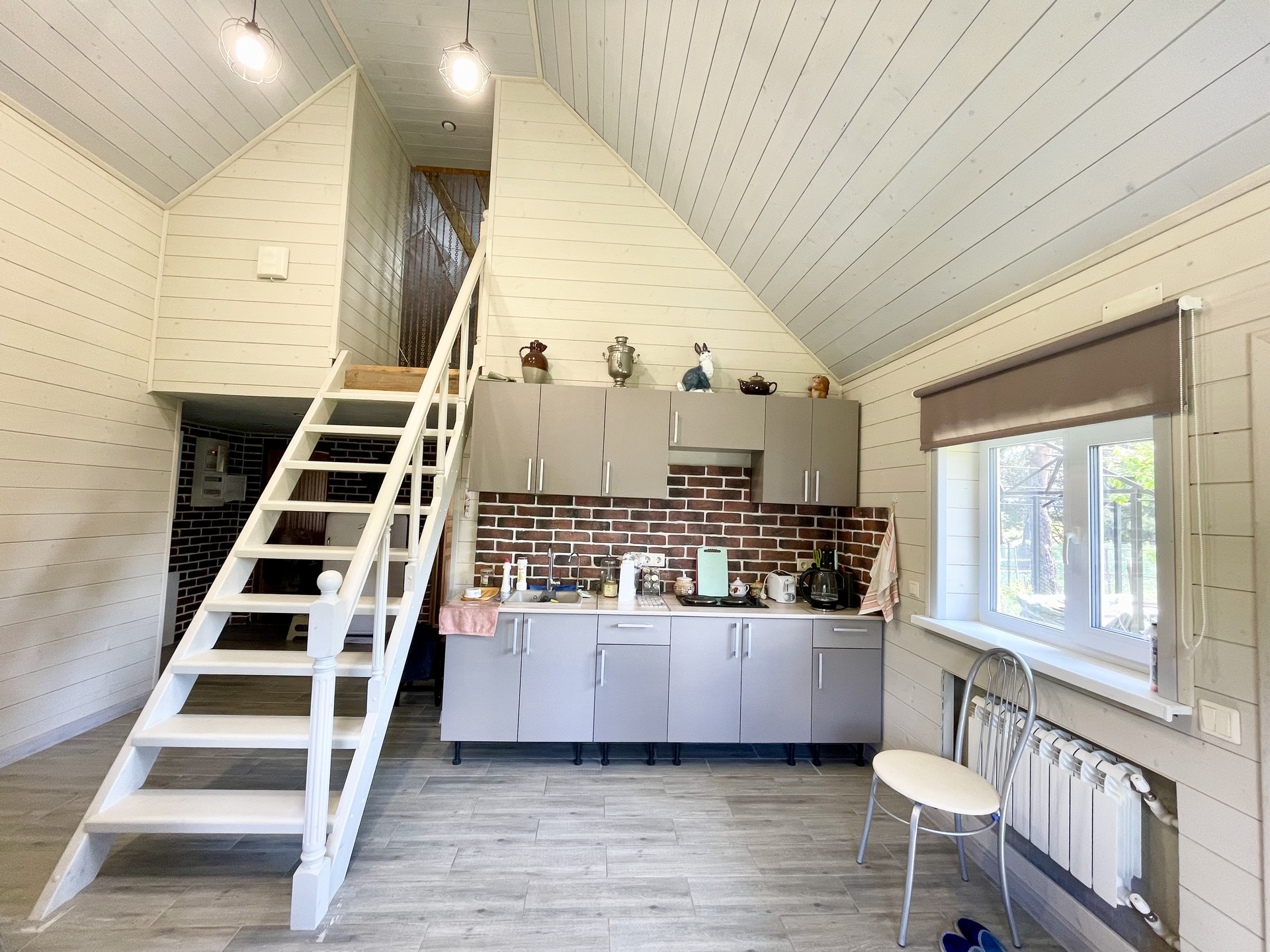 На первом этаже кухня-гостиная, две спальни, санузел, кладовка. На втором этаже спальня.