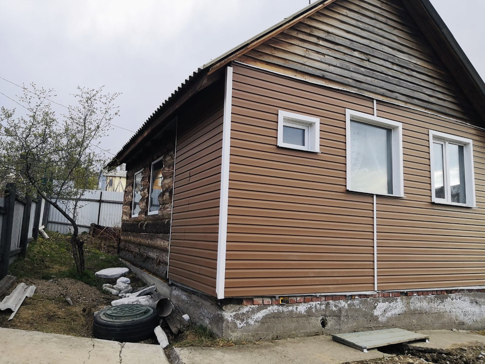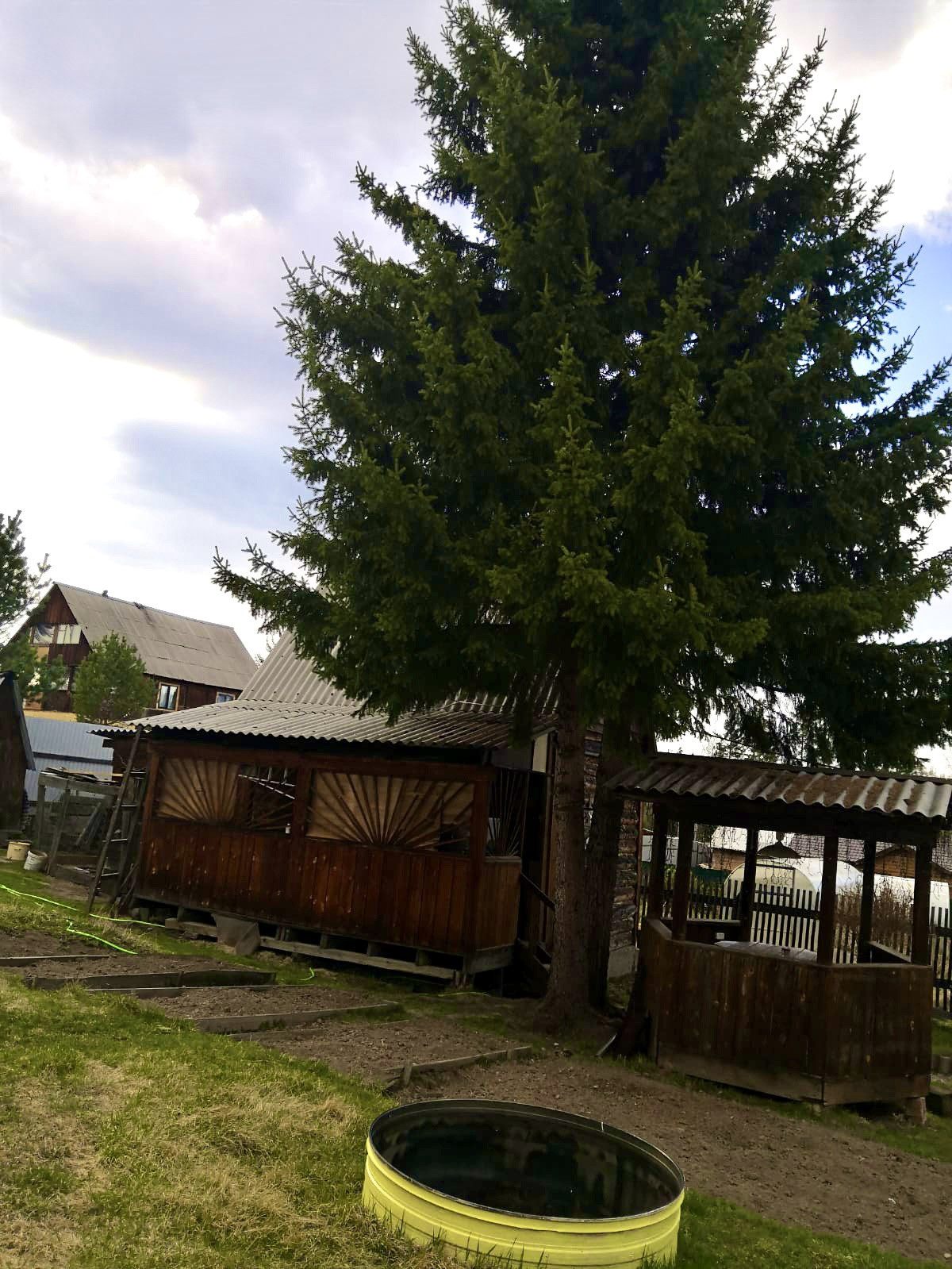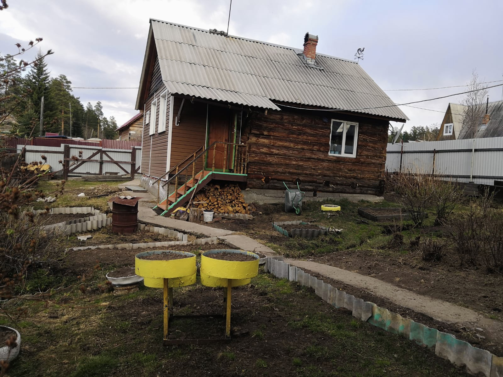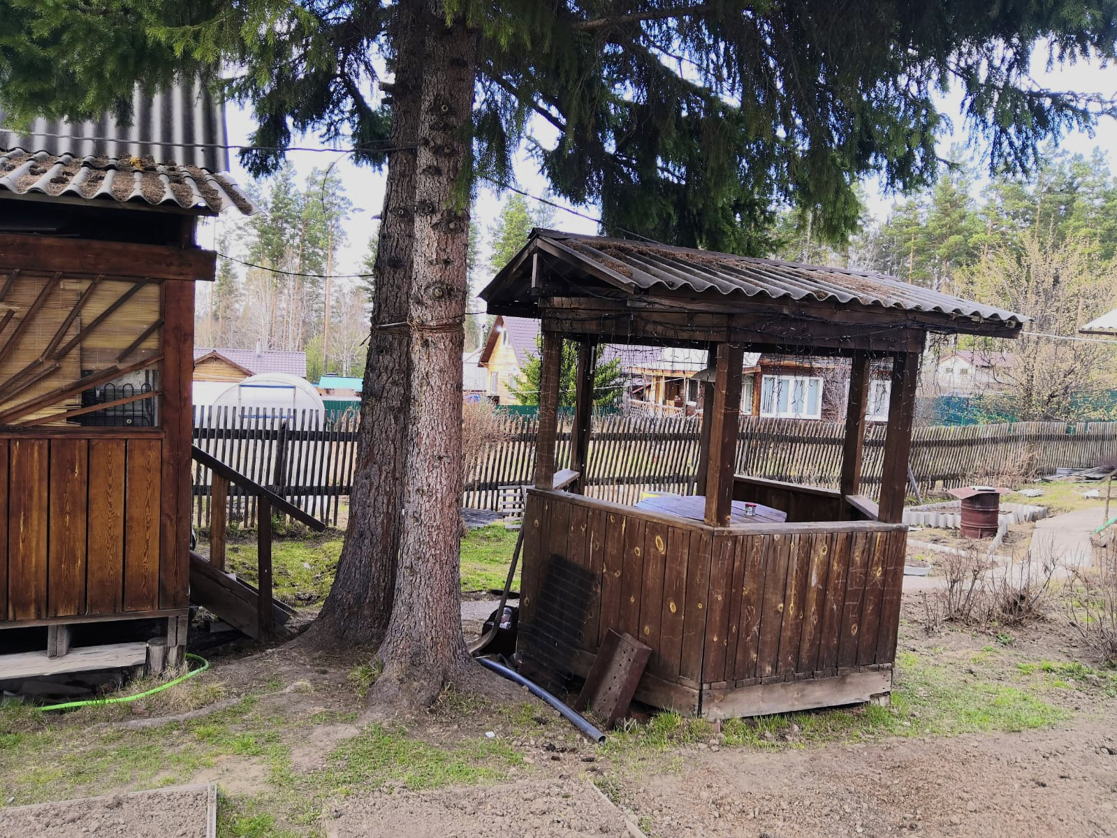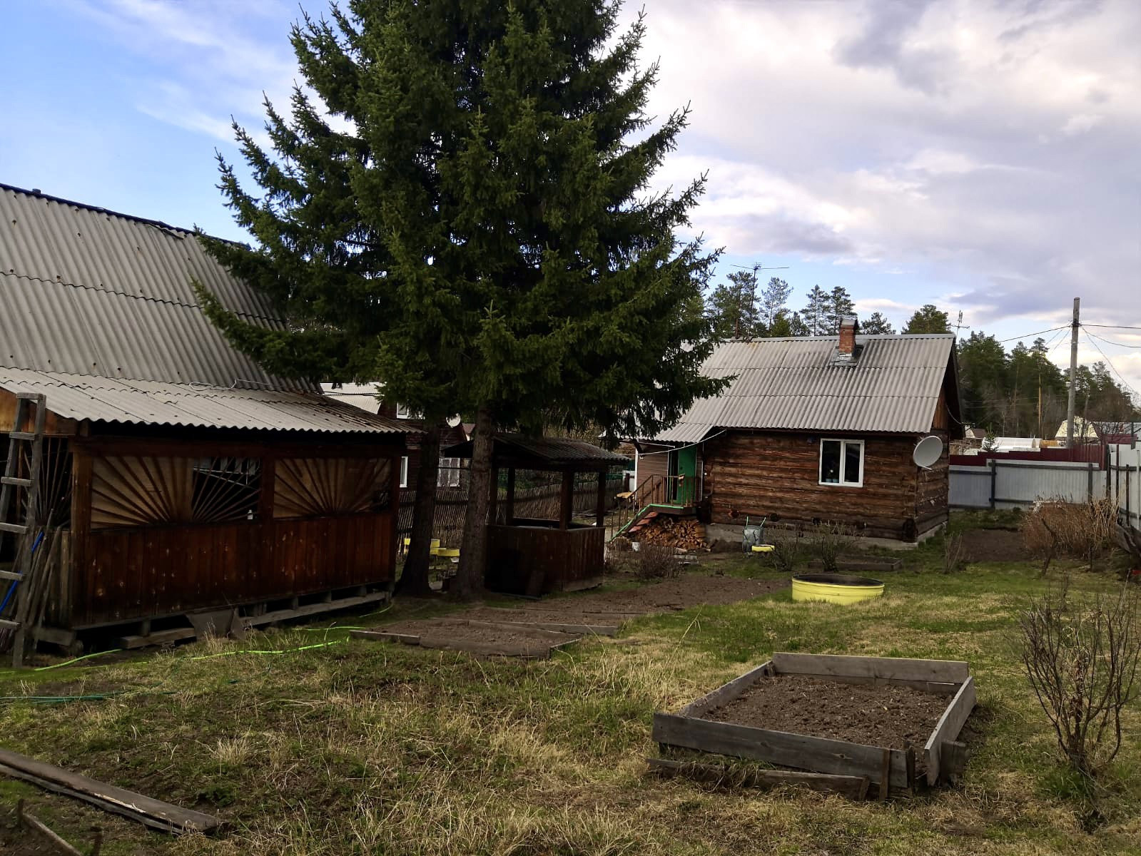 Есть возможность оборудовать второй этаж. На участке есть баня из кругляка на бетонном фундаменте, беседка, стайка для хозяйственных нужд или разведения курей.