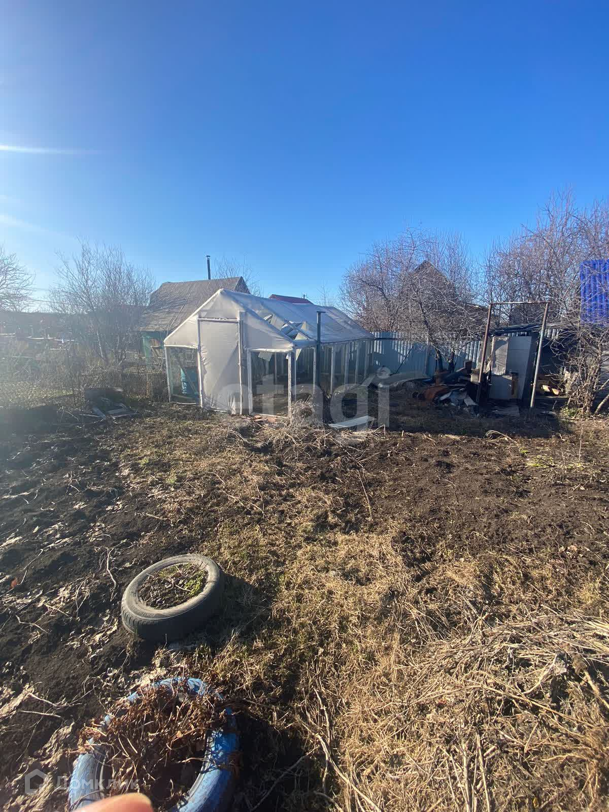 Участок огорожен забором из рабицы.