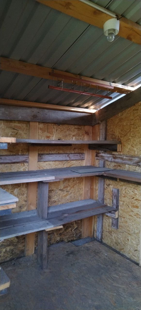 Хоз. постройка покрыта профнастилом, заведено электричество.