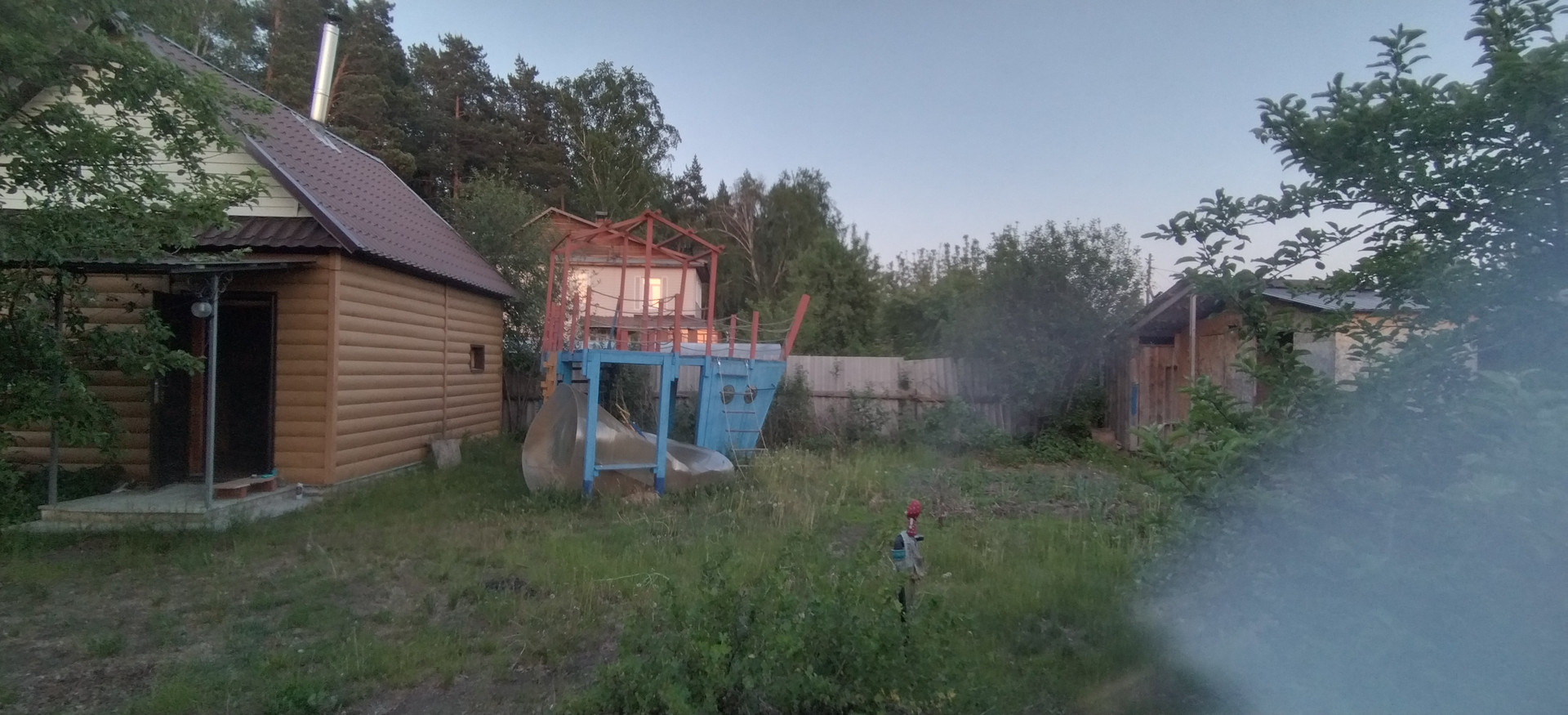 В ста метрах от участка расположен хвойный лес, который виден из дома.
