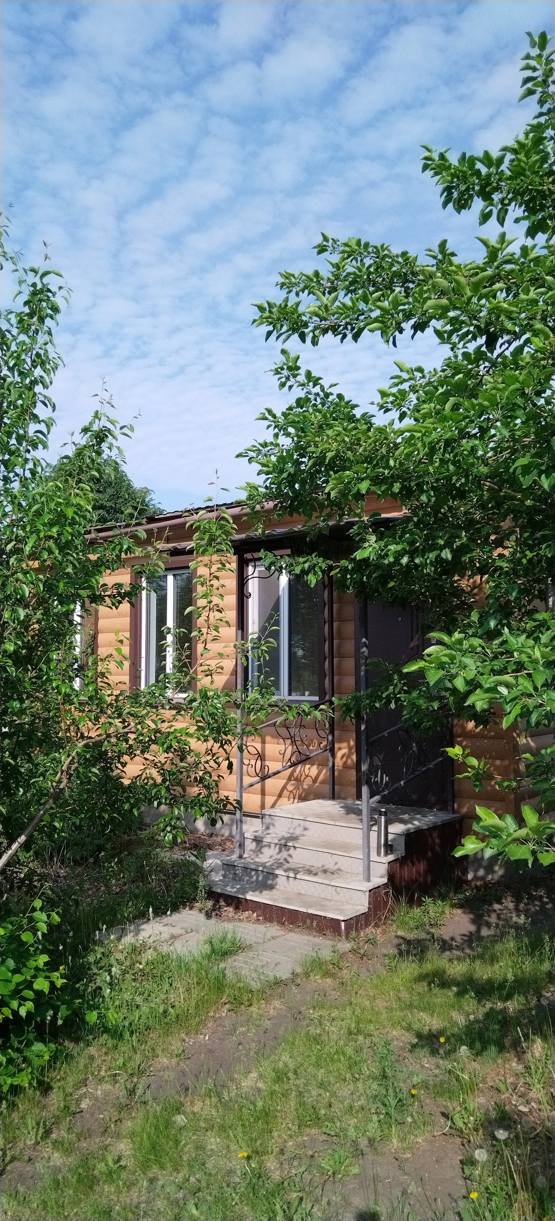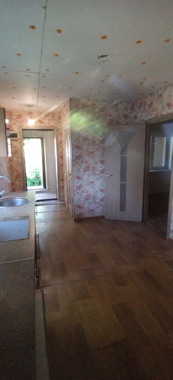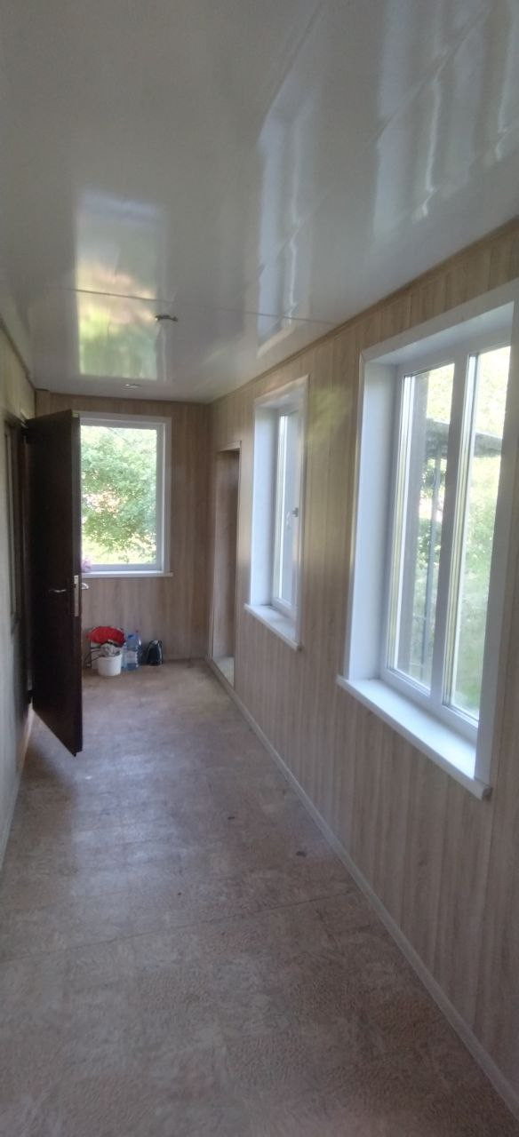 Закрытая теплая веранда с 3-мя окнами, сан. узел, просторная кухня, жилая комната из которой есть вход в кладовую или гардеробную, или место для лестницы ведущей на 2 этаж, если будете строиться.