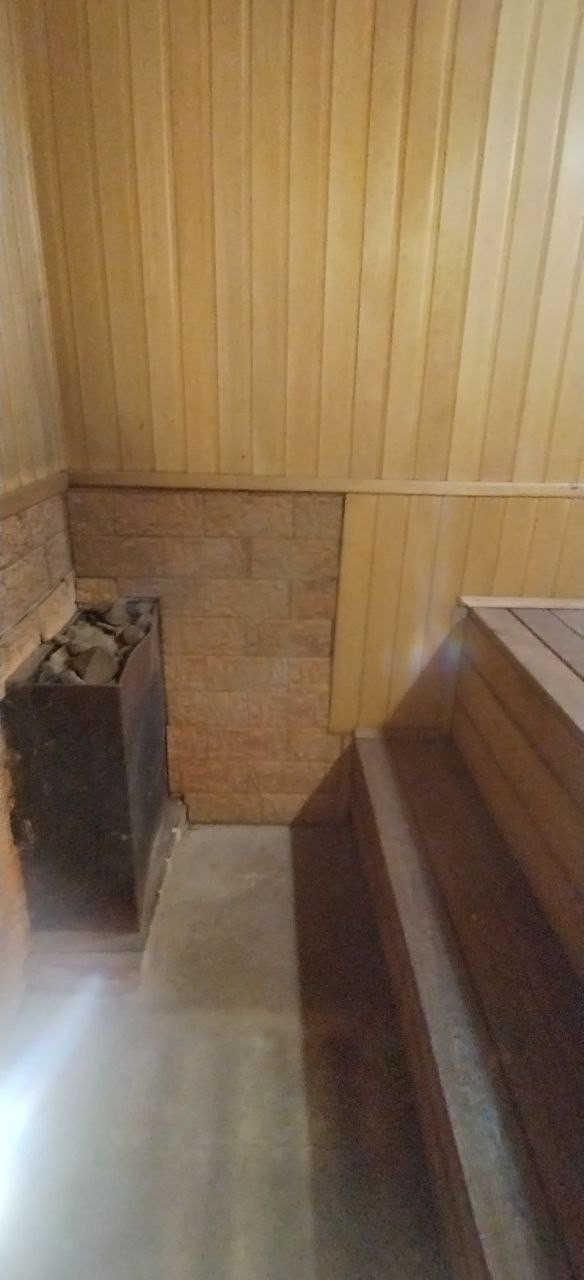 Очень тёплая баня с комнатой отдыха, раздевалка, мойка, парилка отдельно, в мойке кафельный пол, изнутри обшита вагонкой, баня просторная и уютная!
