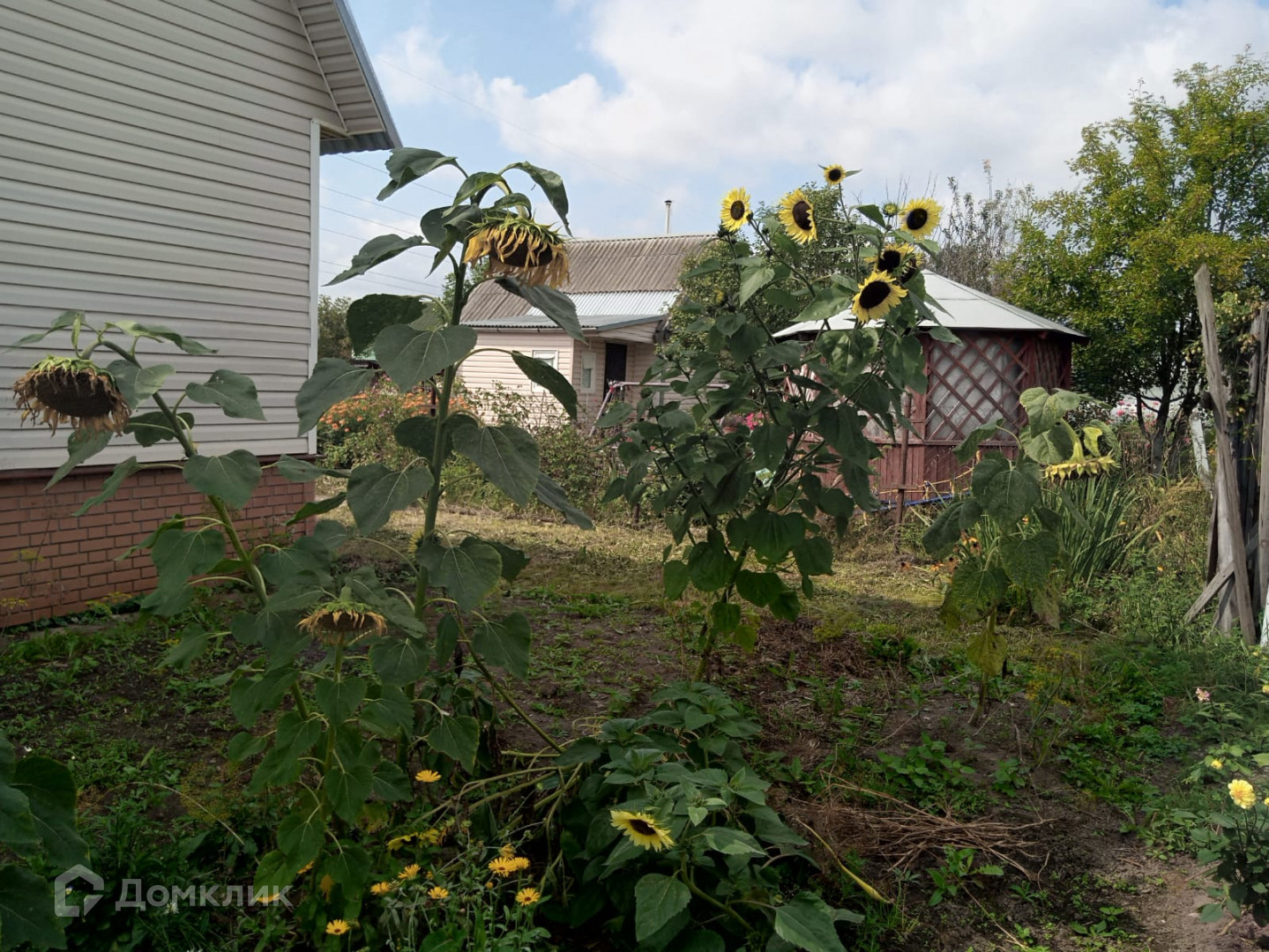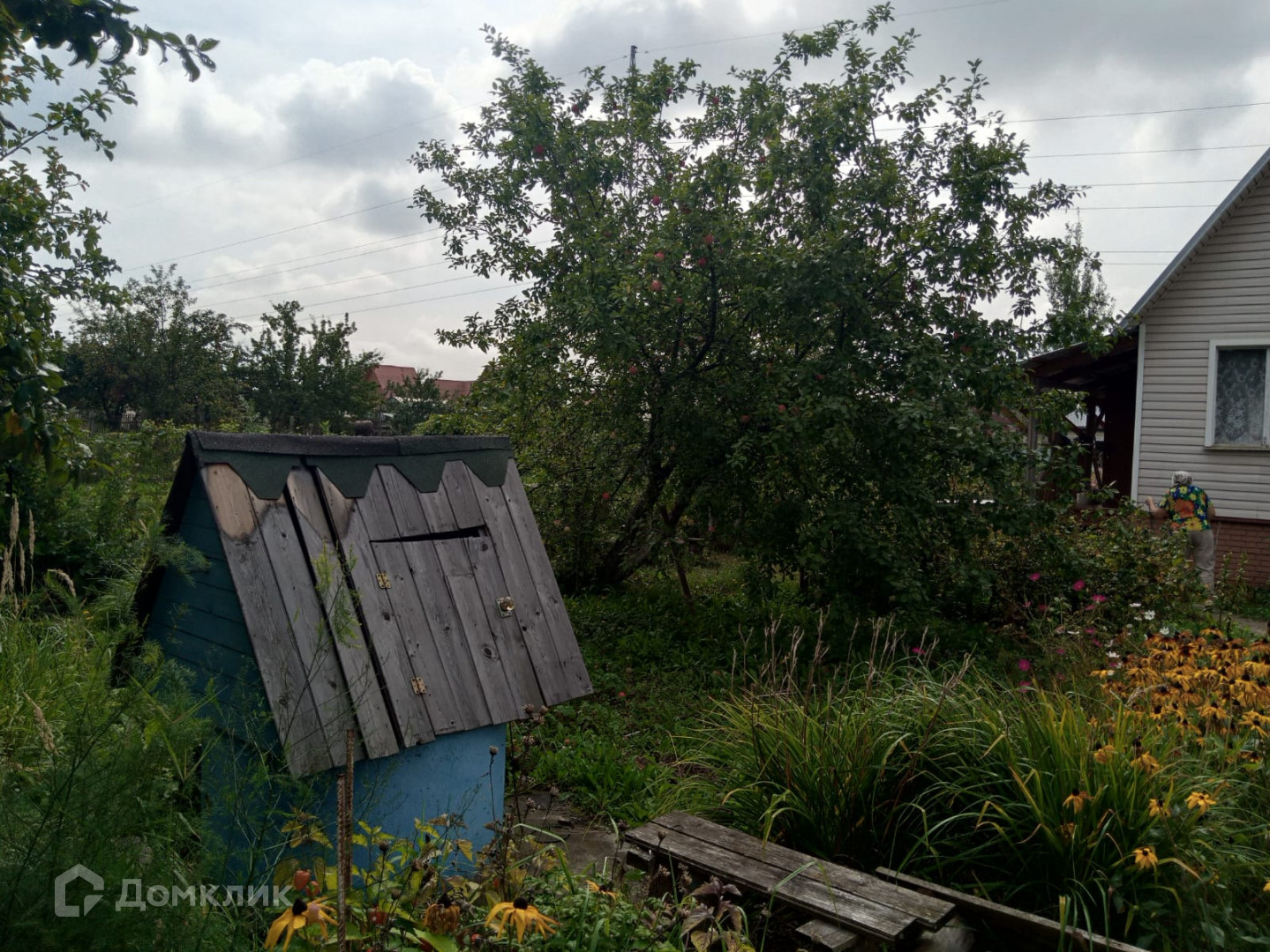Во дворе дома расположены яблони и виноград. Есть баня, с печкой и отделкой из дерева отдельным строением.