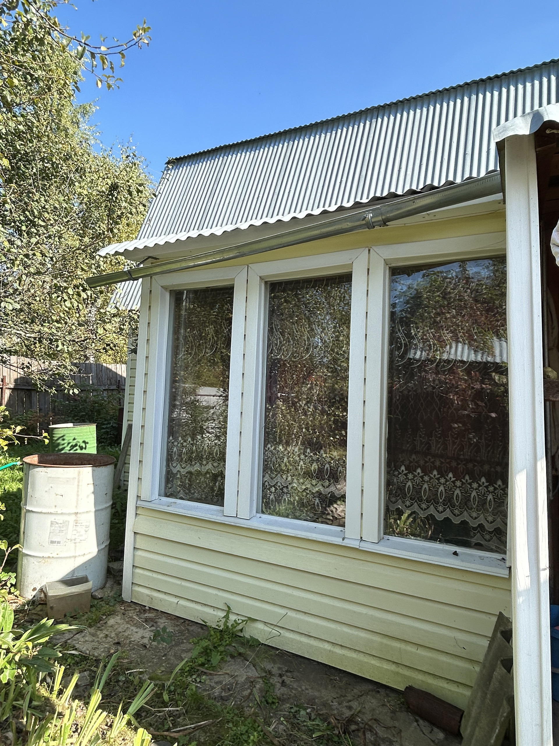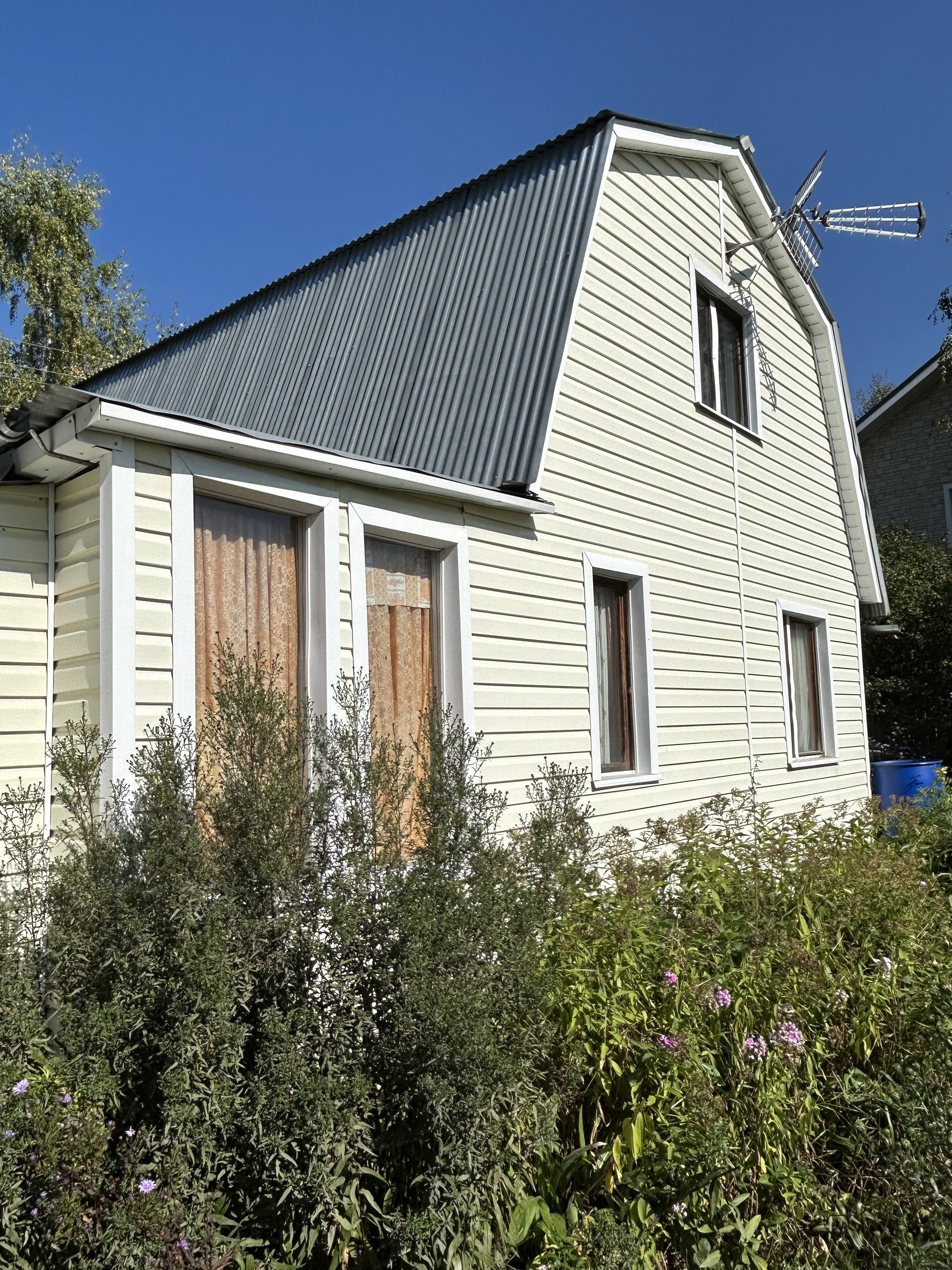Дом 2-этажный каркасно-щитовой, снаружи обшит сайдингом, внутри отделка – вагонка, построен в 2016 году. На первом этаже три комнаты по 6 кв.м. и терраса, на втором этаже одна комната 20 кв.м. На участке свой колодец – 7 колец, хорошая питьевая вода, вода в дом не заведена. На участке также имеется небольшая баня, беседка, две теплицы. Туалет на улице. Участок огорожен, есть место для парковки автомобиля.