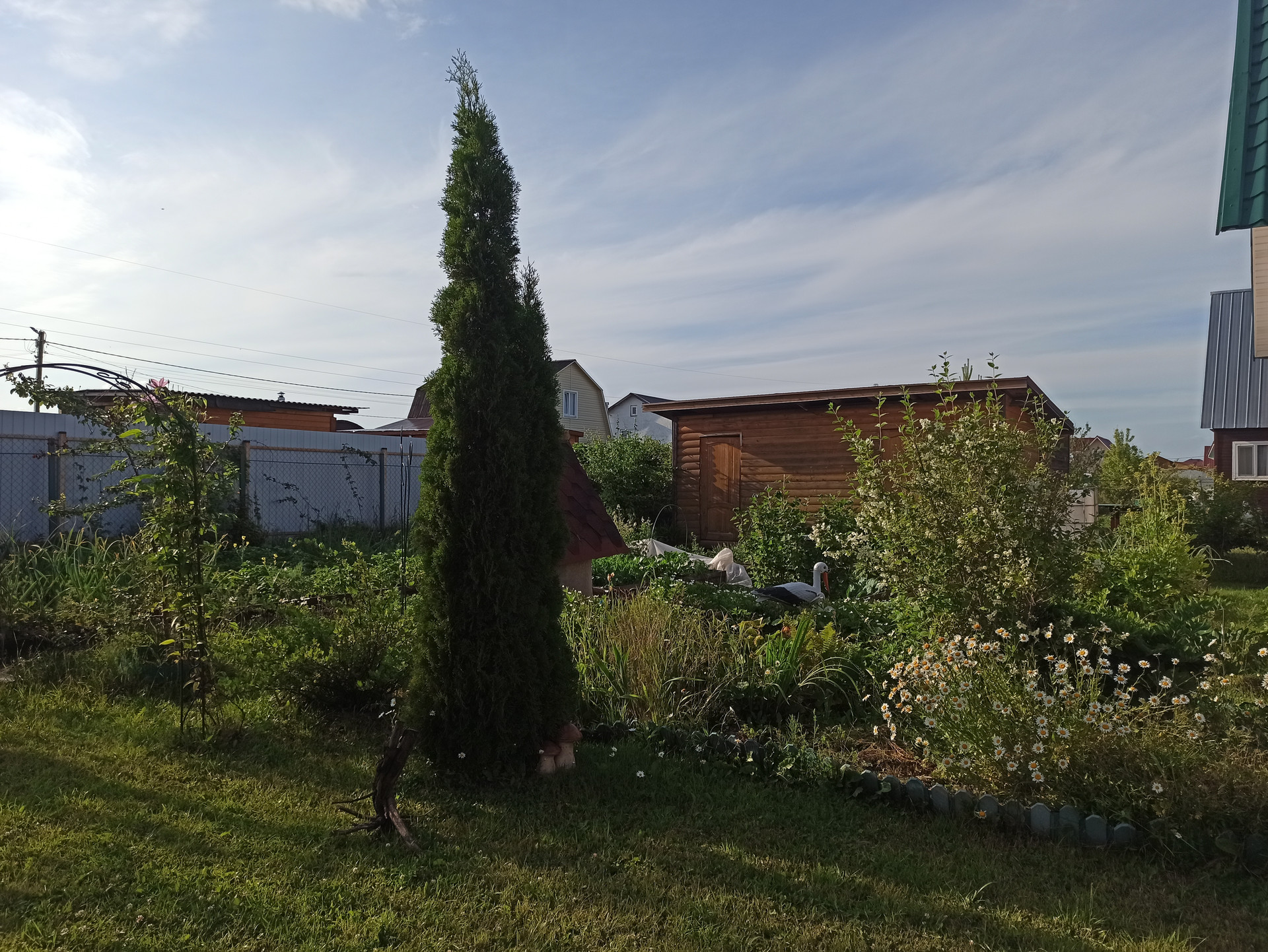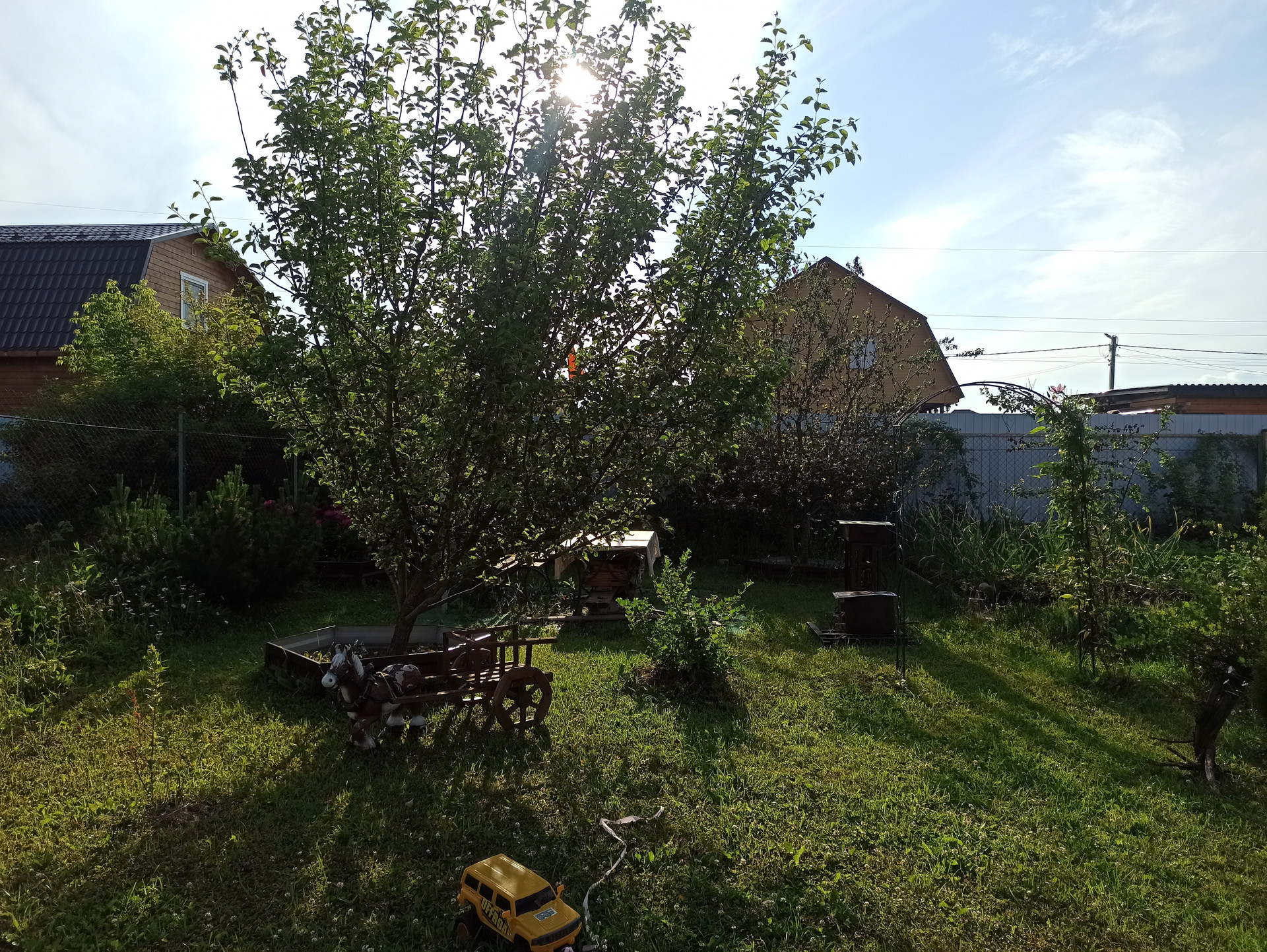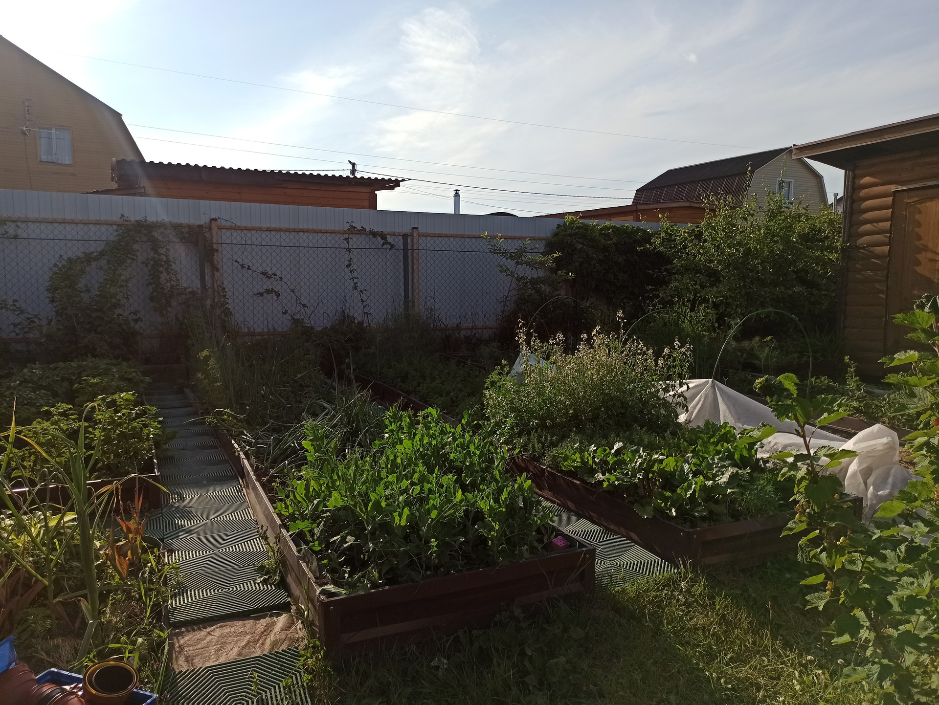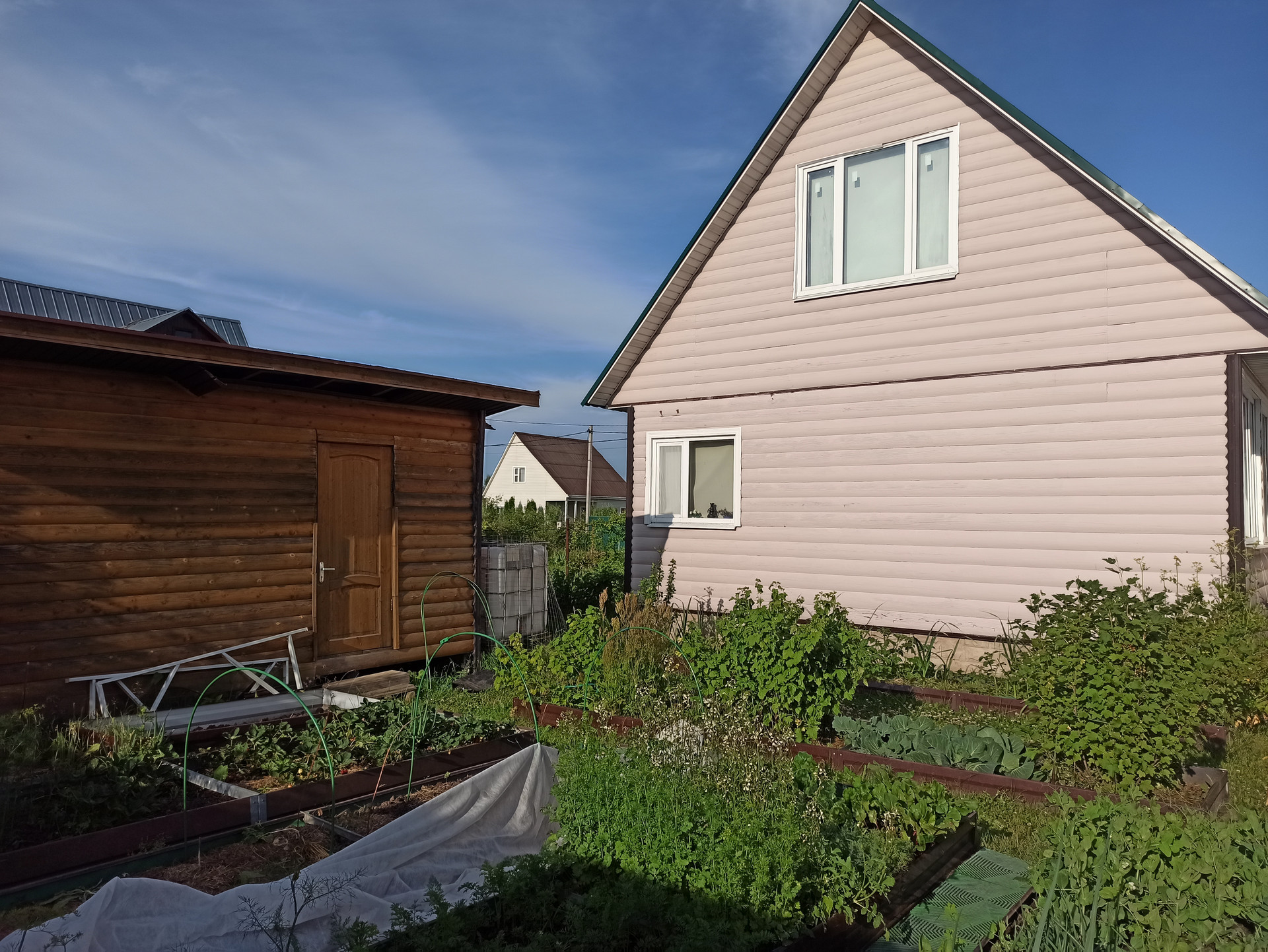 Парковка для машины, туалет летний и душевая летняя, сарай, дровница.
