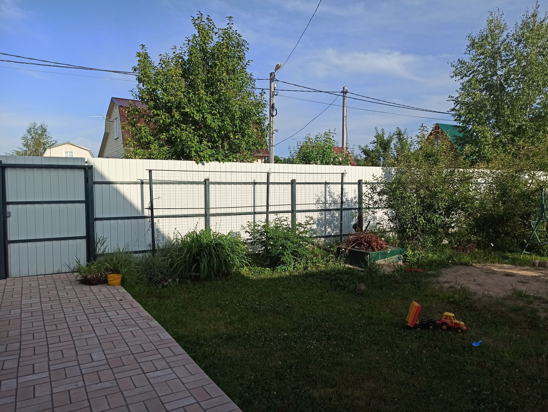 Участок огорожен со всех сторон, металлические въездные ворота, ухожен, с плодовыми деревьями и кустарниками: молодые яблони, груши, малина, смородина, вишня, много многолетних цветов. Дом и земля оформлены, подходит под ипотеку, для прописки дом нужно переоформлять из нежилого в жилое здание.