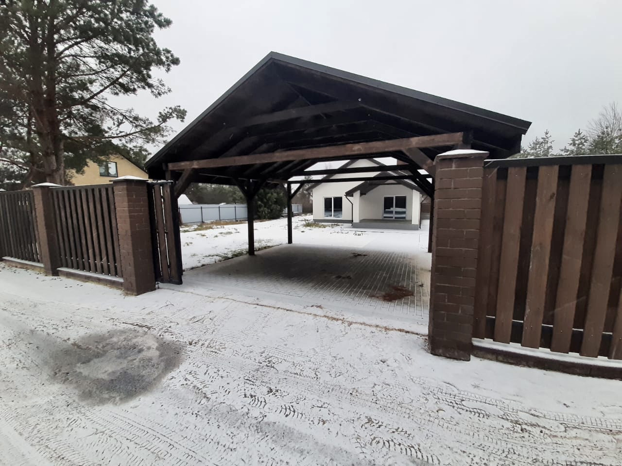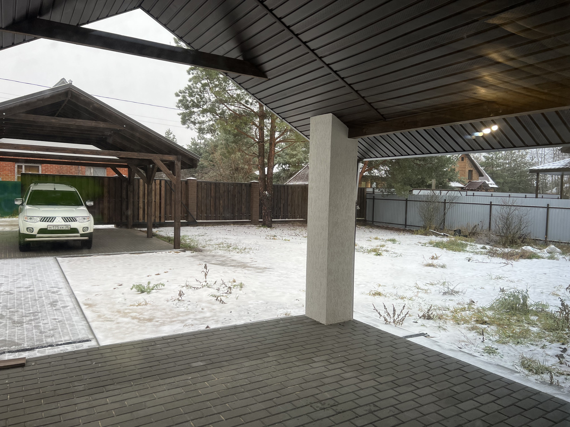 Стены ошпаклеваны,установлен забор с 2-я откатанными воротами.