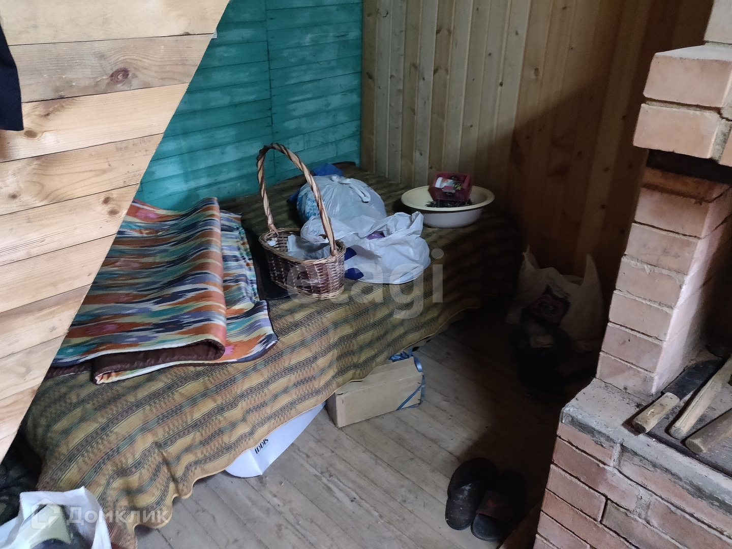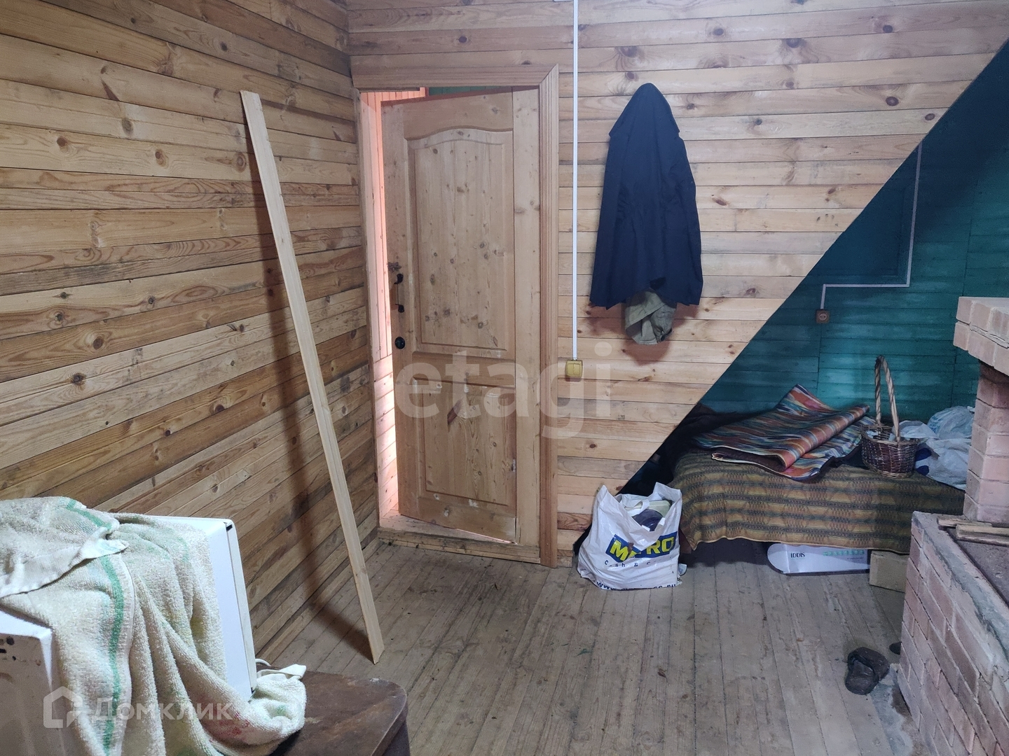 Дом построен из бревна, обшит вагонкой как внутри, так и снаружи. В доме грамотная и серьёзная кирпичная печь, с надёжным фундаментом. Под домом фундамент также надёжный - заливка из бетона. В самом доме есть также подпол для хранения запасов. Крыша не течёт.