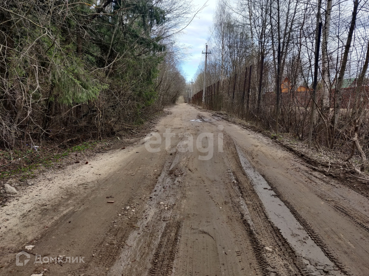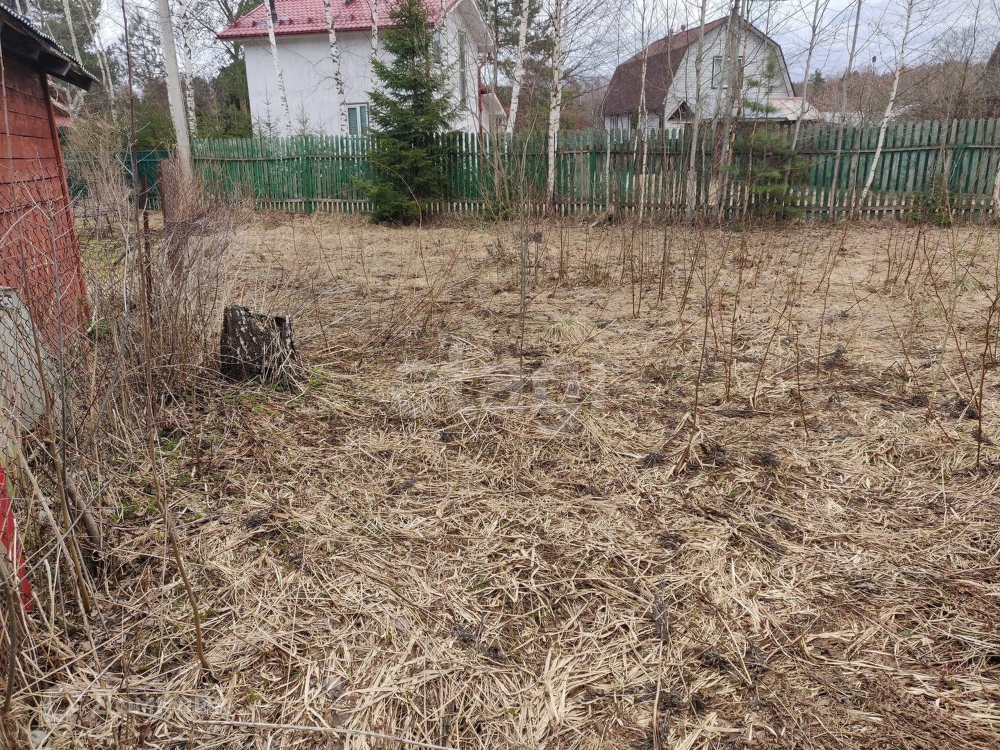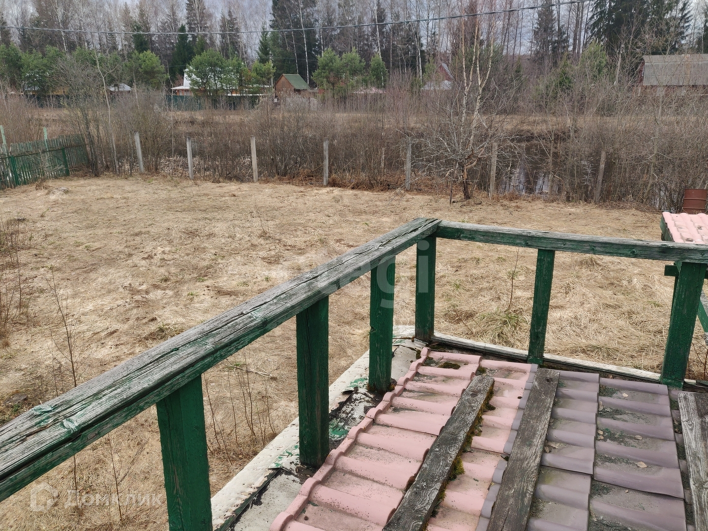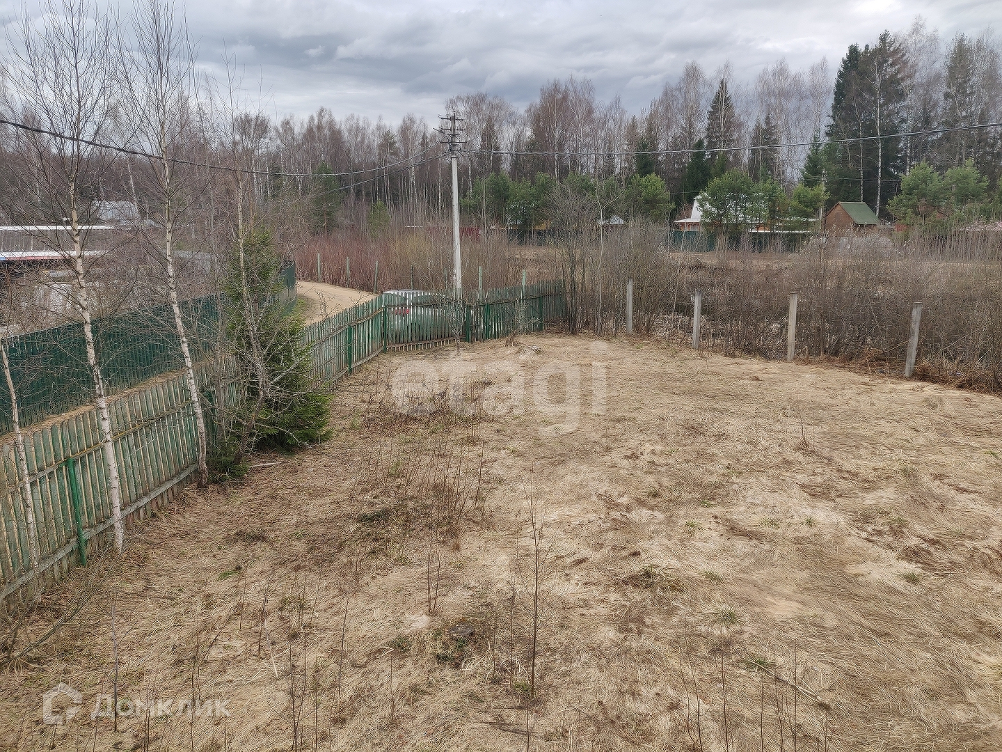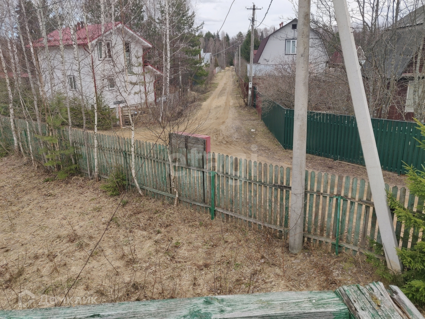 Участок по факту треугольный. Соседи на данном участке только с одной стороны. Со второй стороны проходит дачная дорога, а с третьей стороны соседствует пруд. На данный момент никаких строений на участке не зарегистрировано. Дом в том числе. Дороги чистят круглый год.