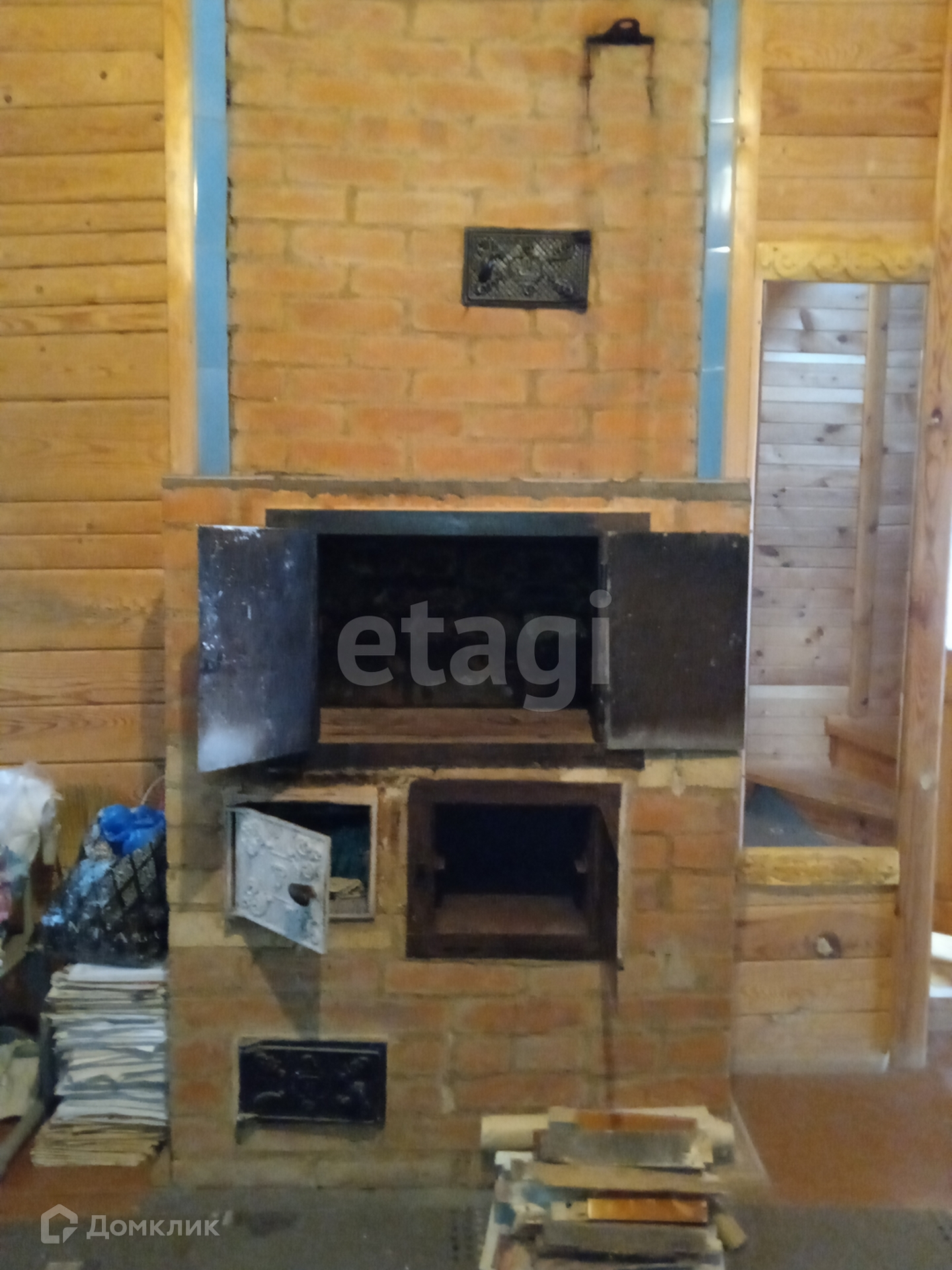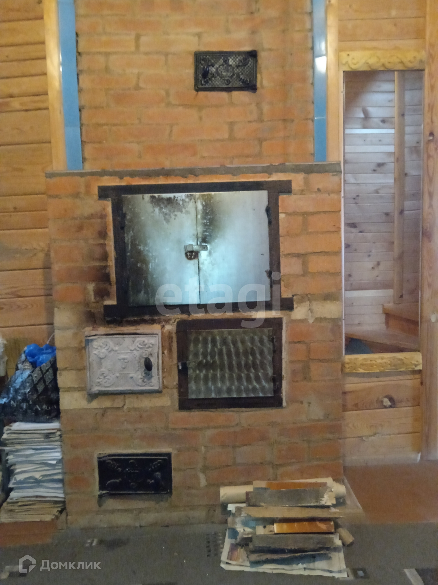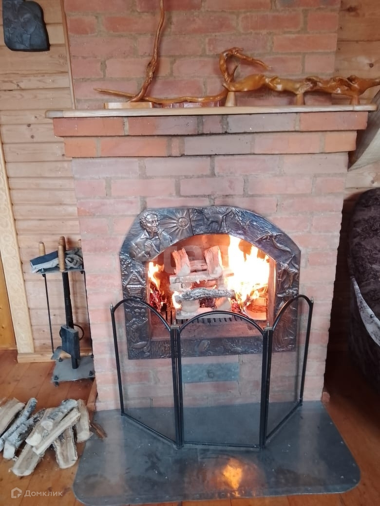 Отопление - печь шведка, камин с чеканкой.