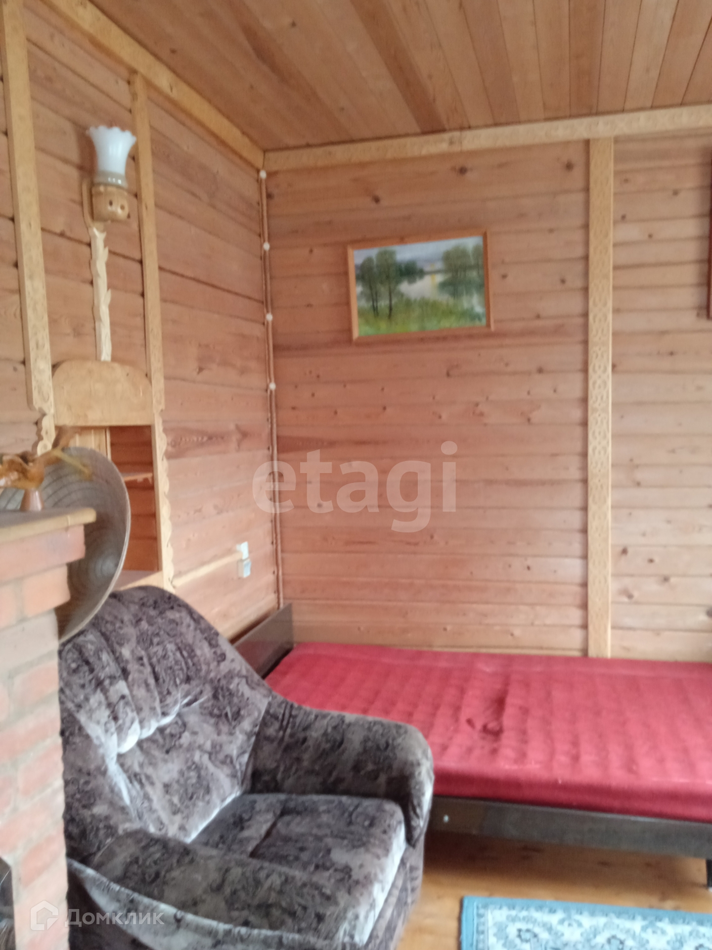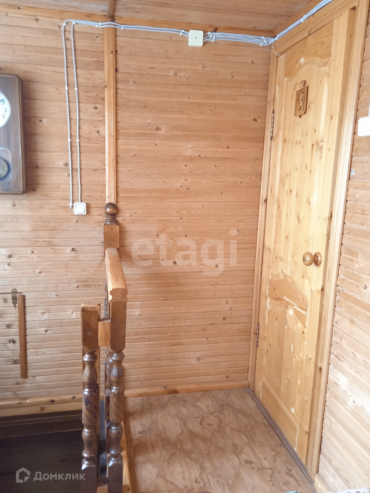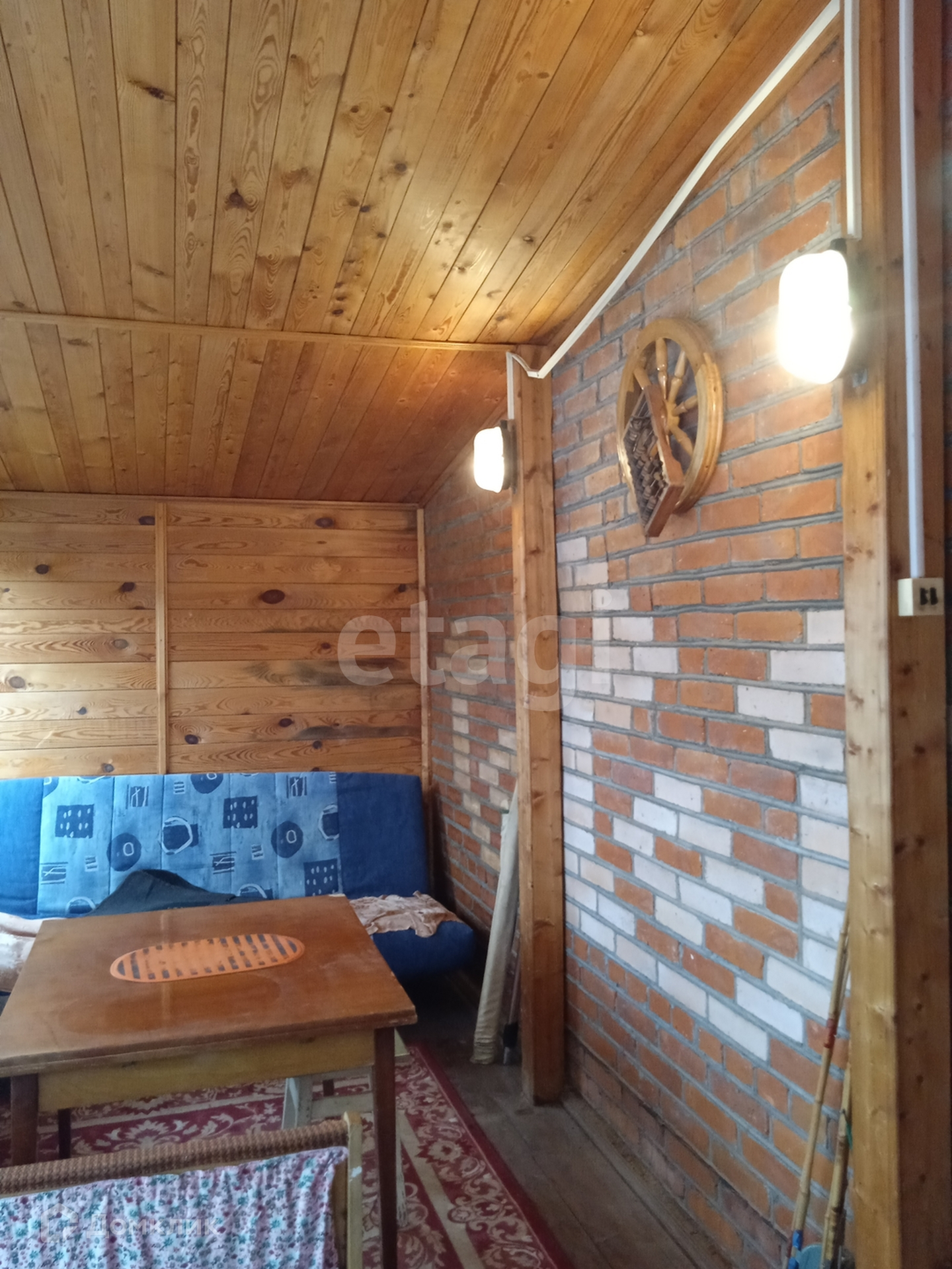 Обшиты изнутри дома натуральным деревом, сосна.