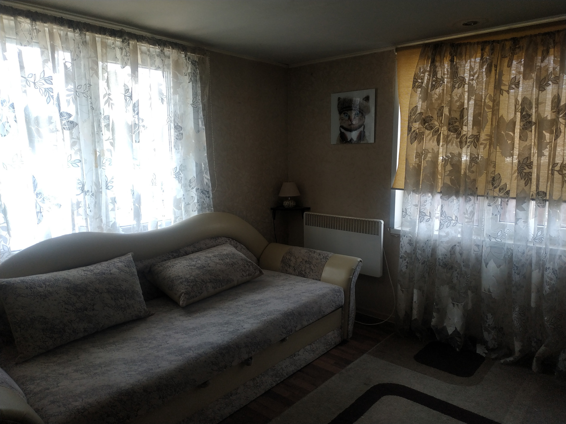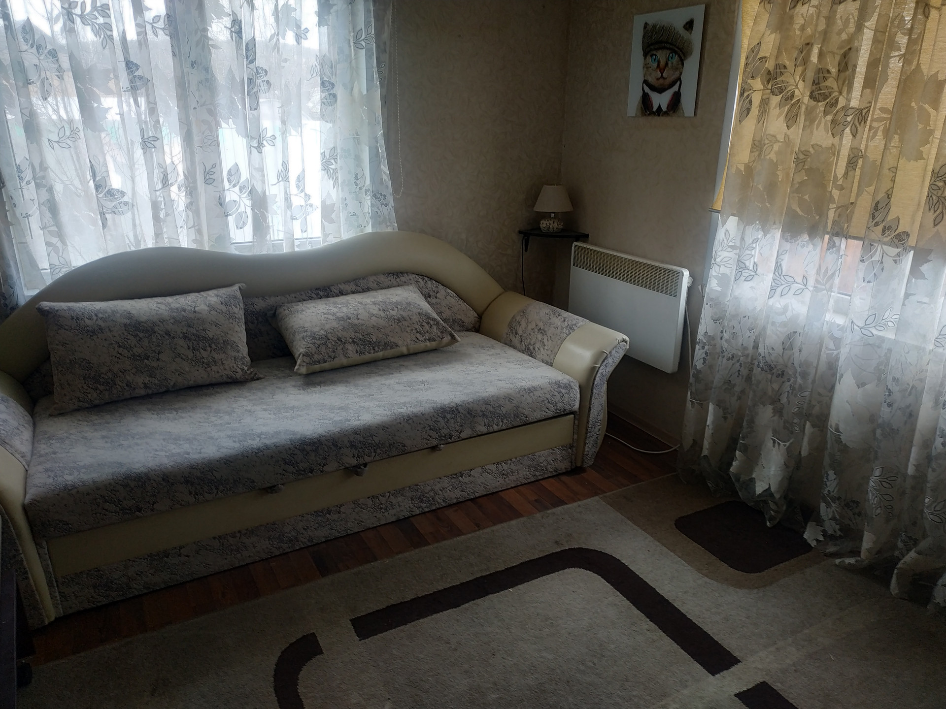 Дом для постоянного проживания. К дому пристроен гараж. Отопление возможно печное и электрическое (электрические конвекторы). В доме расположены кухня, гостиная, две спальни, санузел  с душевой кабиной. Мебель всю оставим.