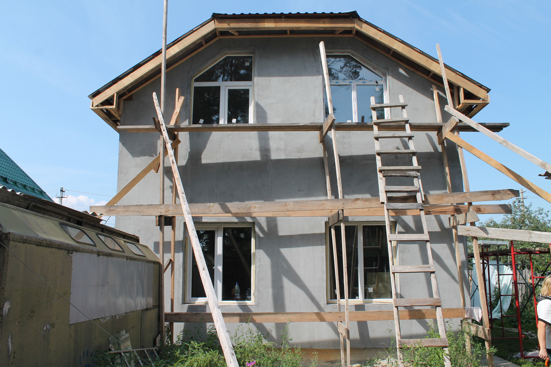 Дом 2018 года постройки, на фундаменте, из пеноблоков, снаружи декоративная штукатурка, внутри под чистовую отделку.