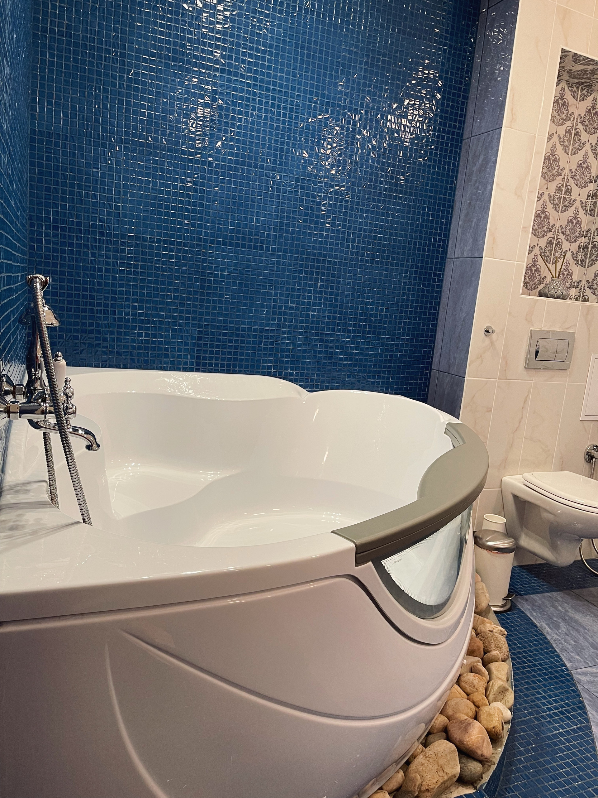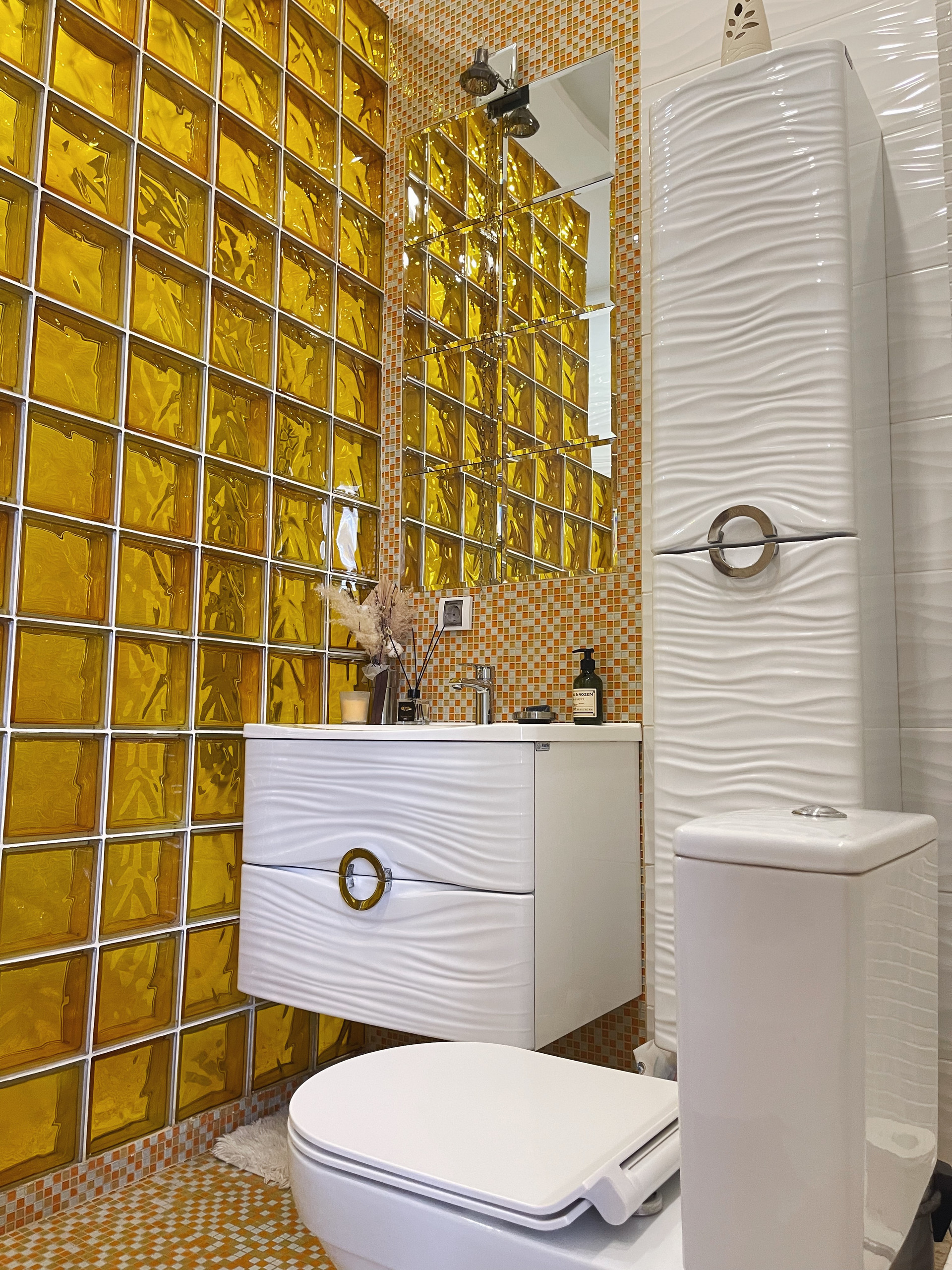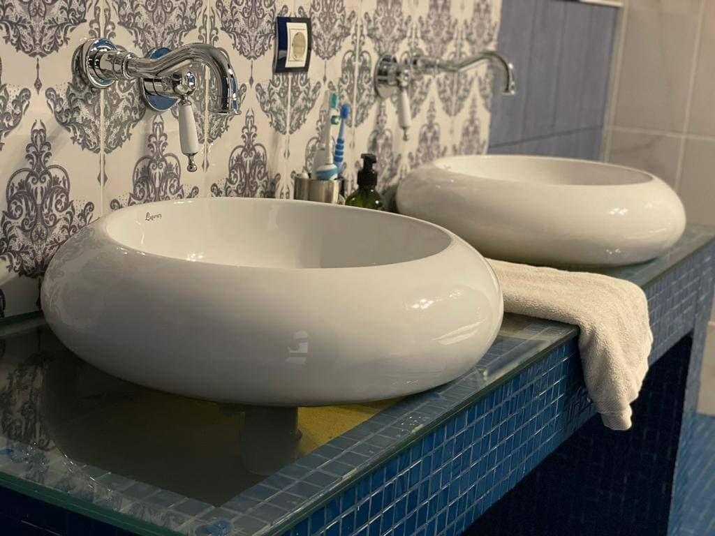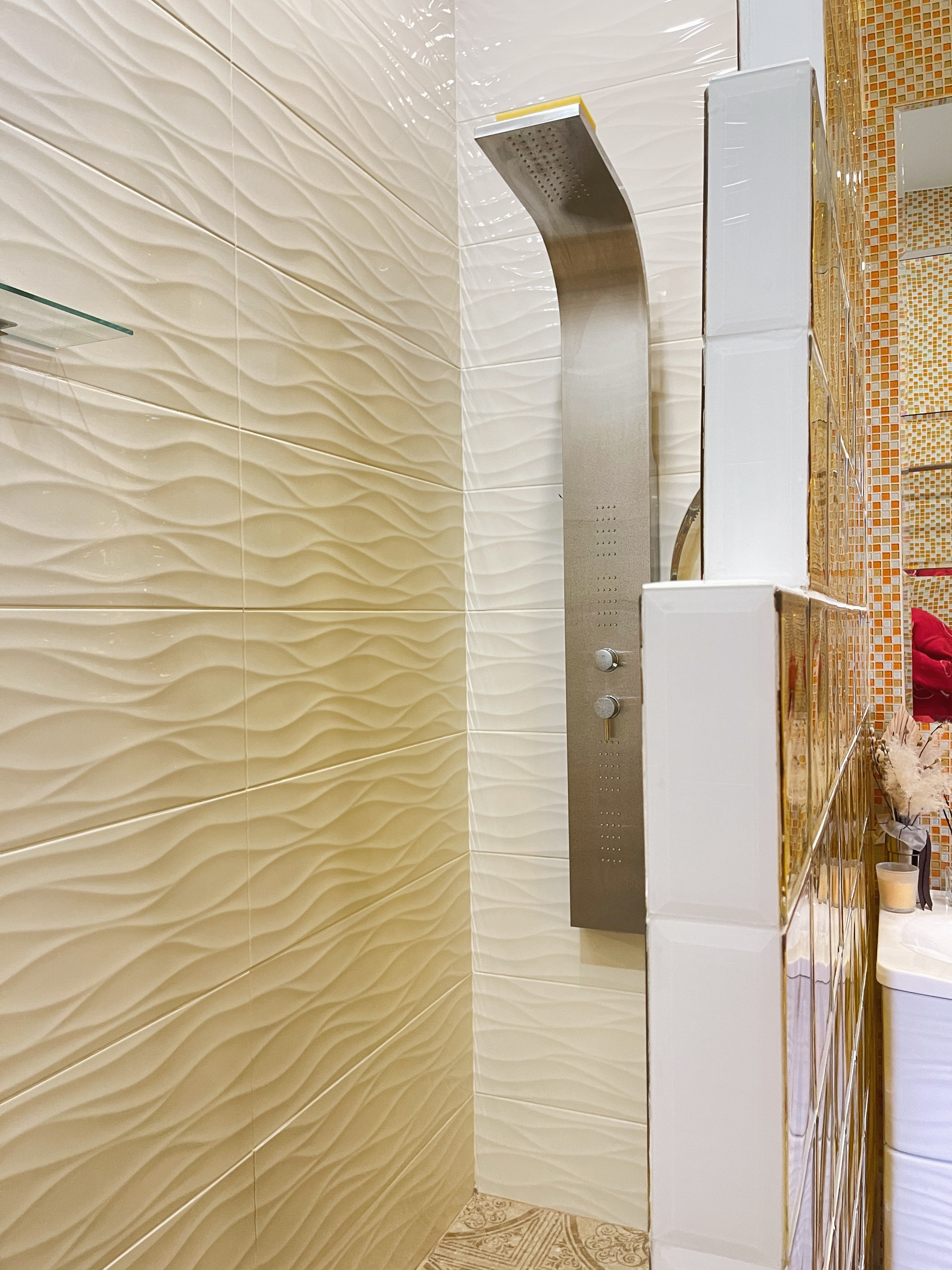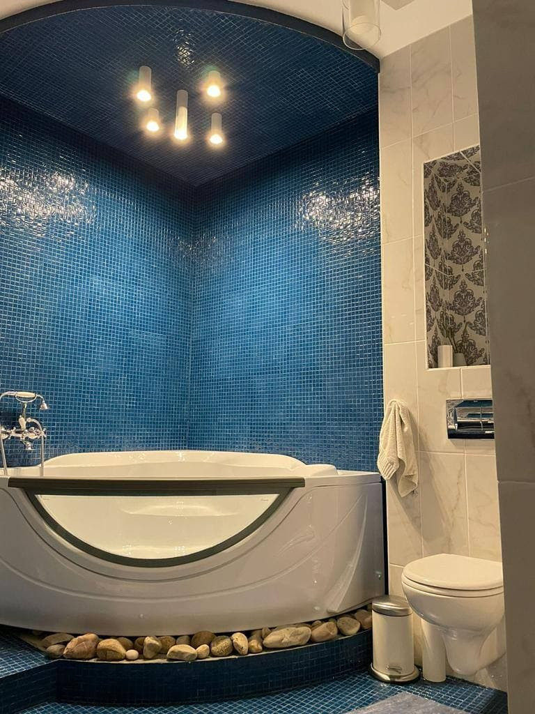 Отделка сан узлов: керамическая плитка, мозаика.
