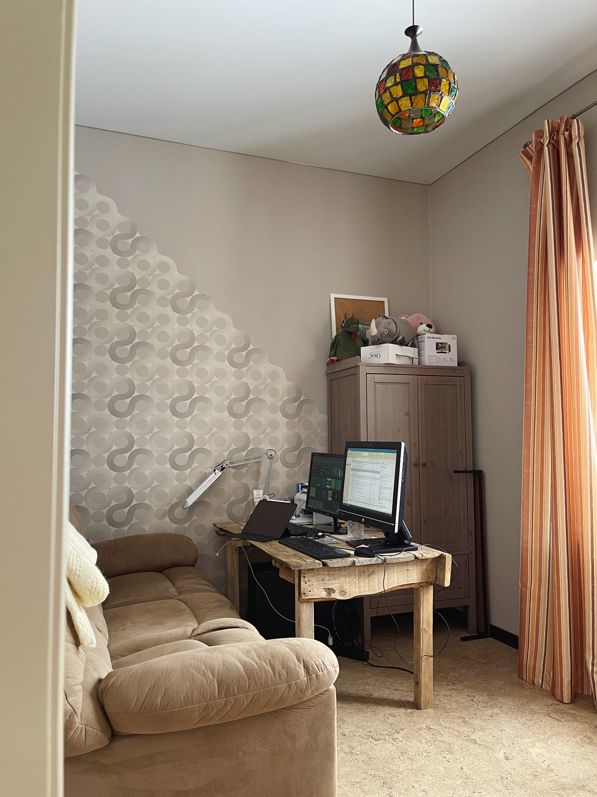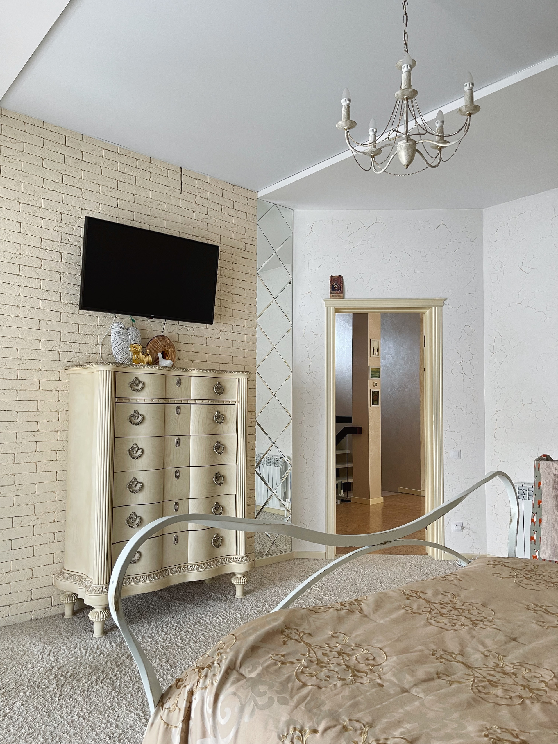 Второй этаж: пробковый ламинат, спальня - ковровое покрытие.