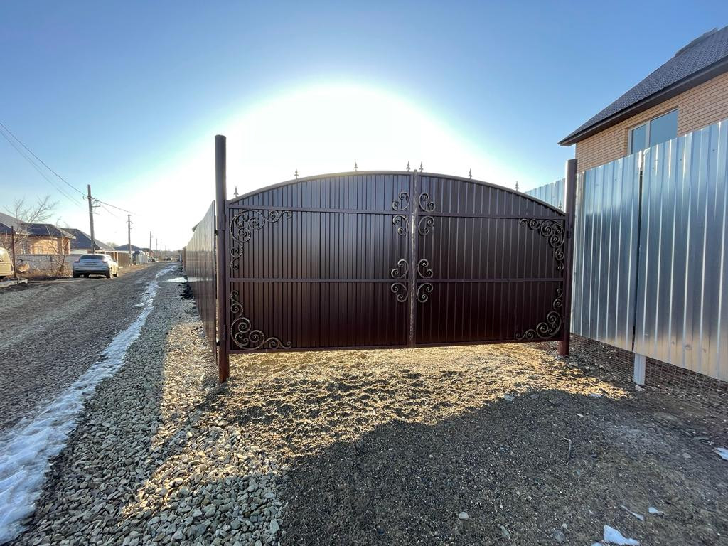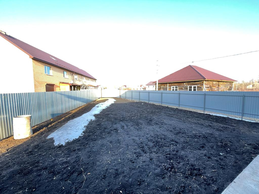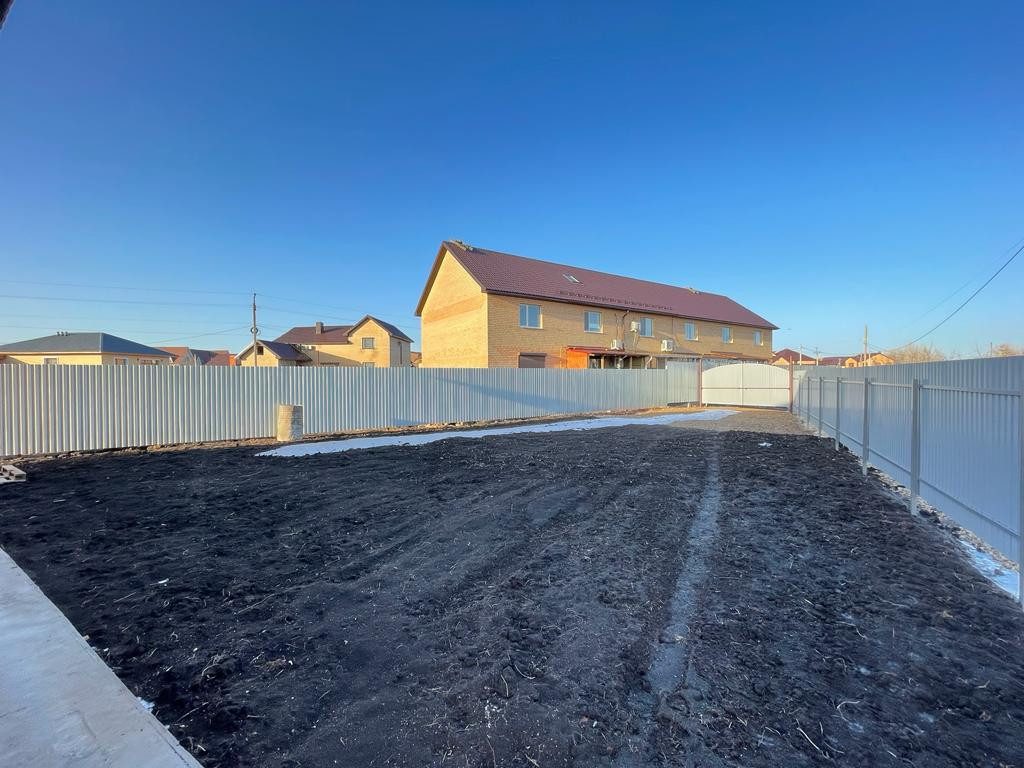 Забор по периметру участка, установлены калитка и ворота, отсыпана парковочное место на 2 машины (можно построить гараж или навес), завезена земля, выровнен участок. Дорога к дому отсыпана, зимой чистят.