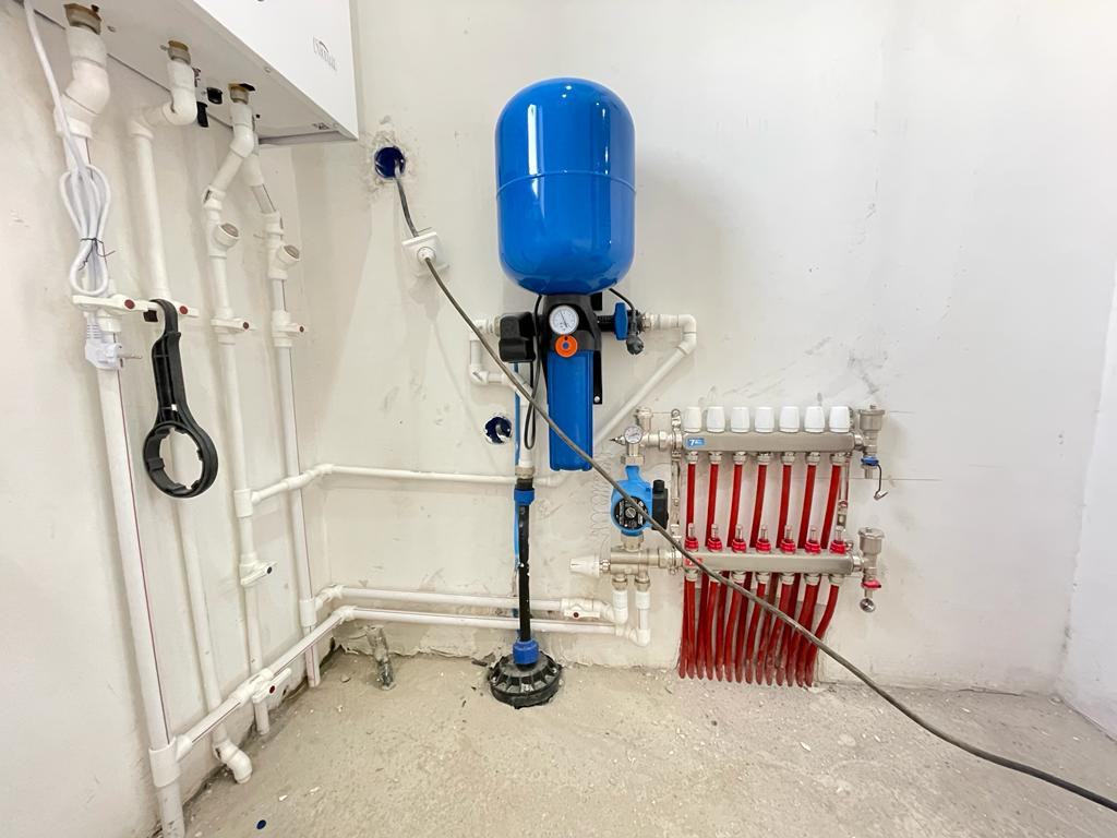 - Отопление: двухконтурный газовый котёл 24 кВт, теплый полы + радиаторы.